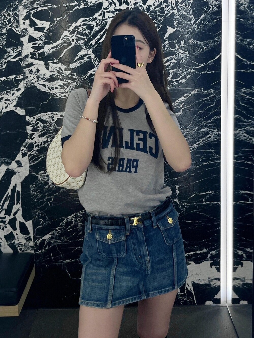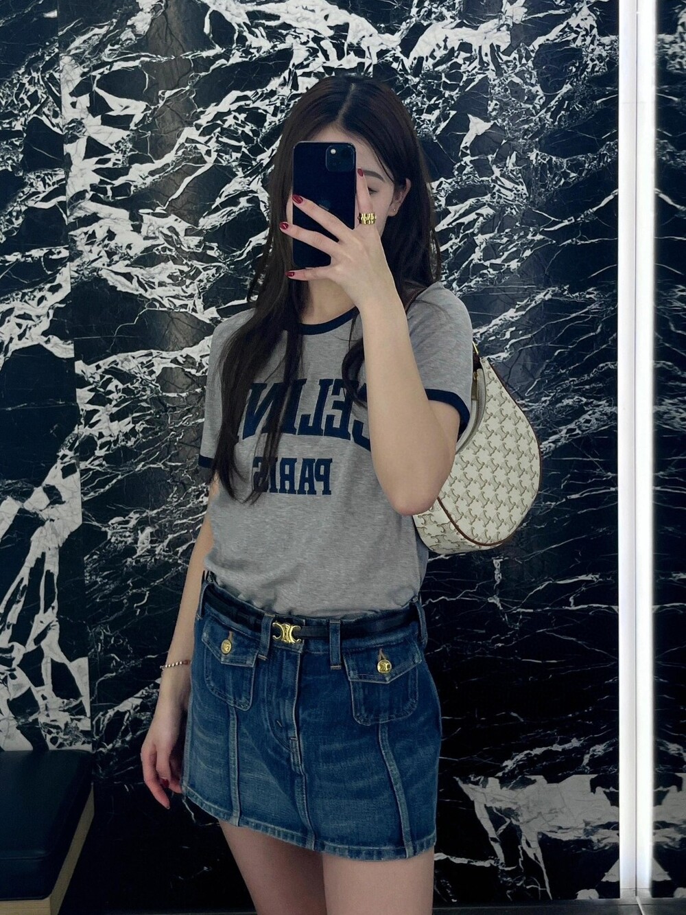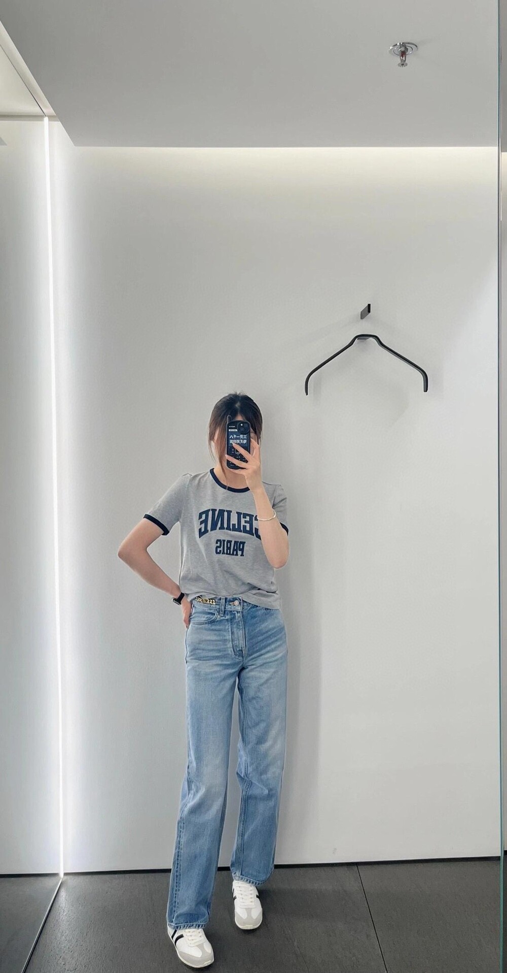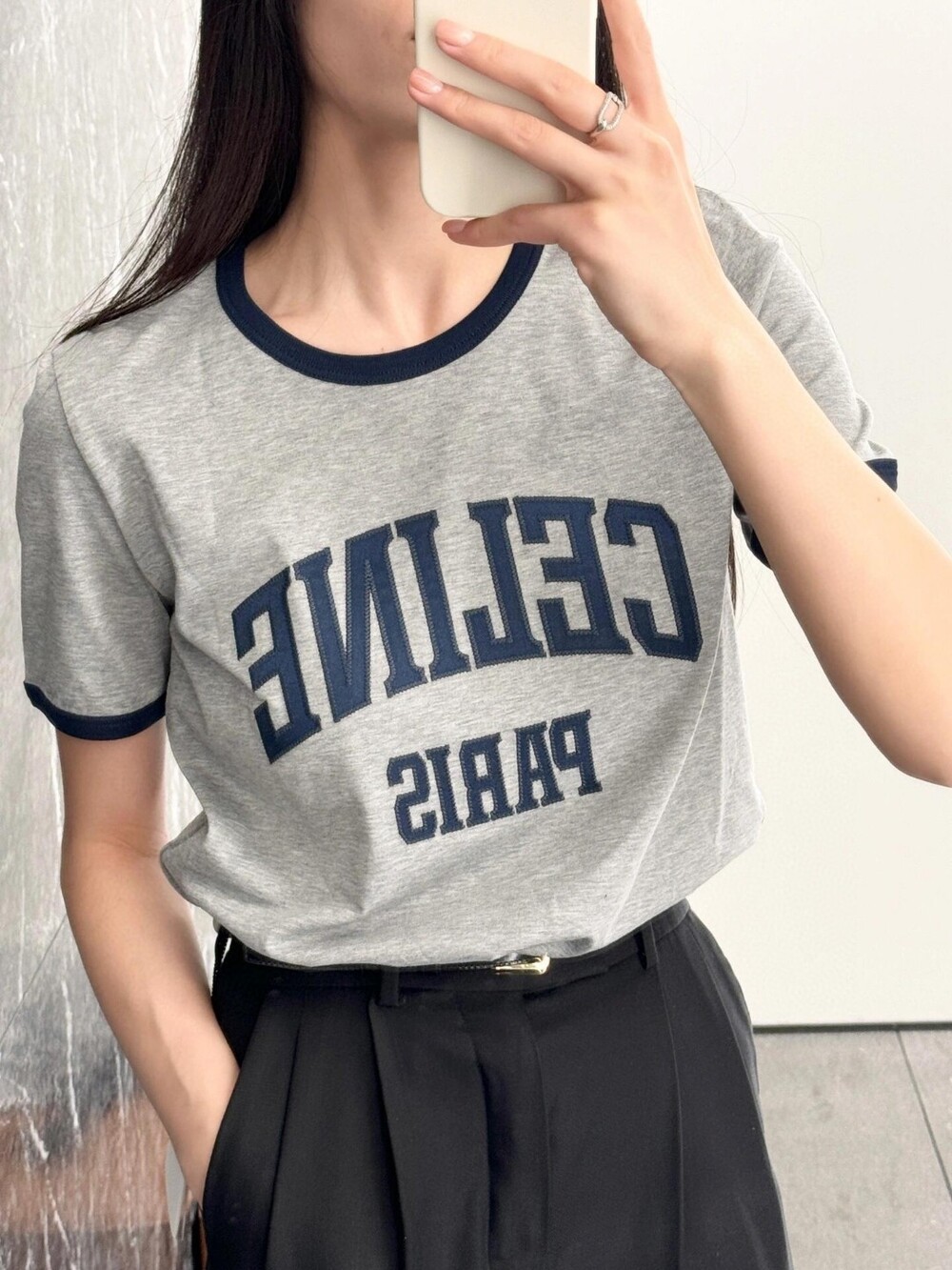 그레이와 네이비 배색 조화가 예쁜 셀 반소매 티입니다 🤍