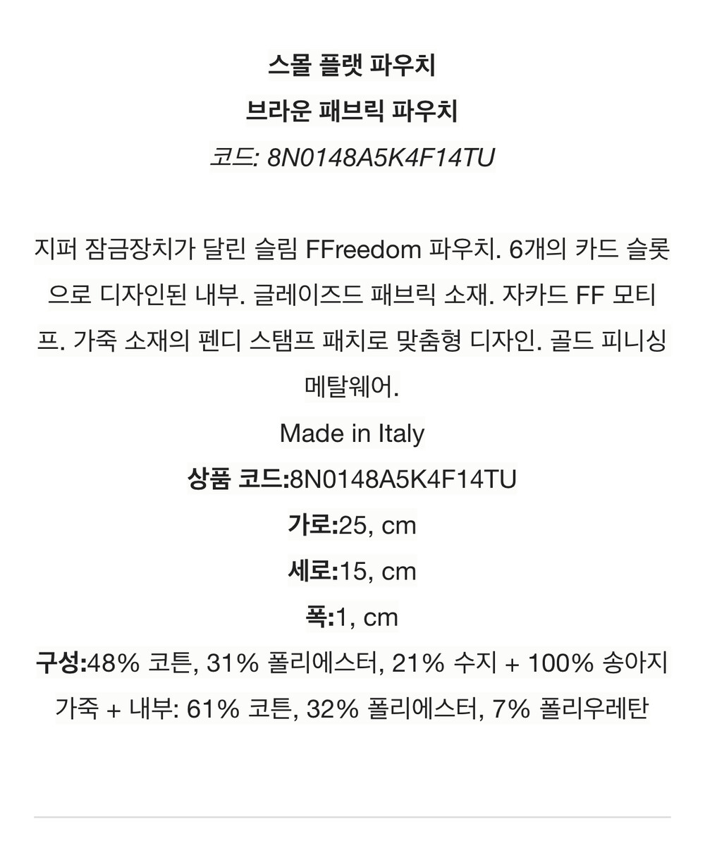 [정매장바잉] FF 펜디 플랫 파우치 스몰 플랫 파우치 8N0148A5K4F14TU