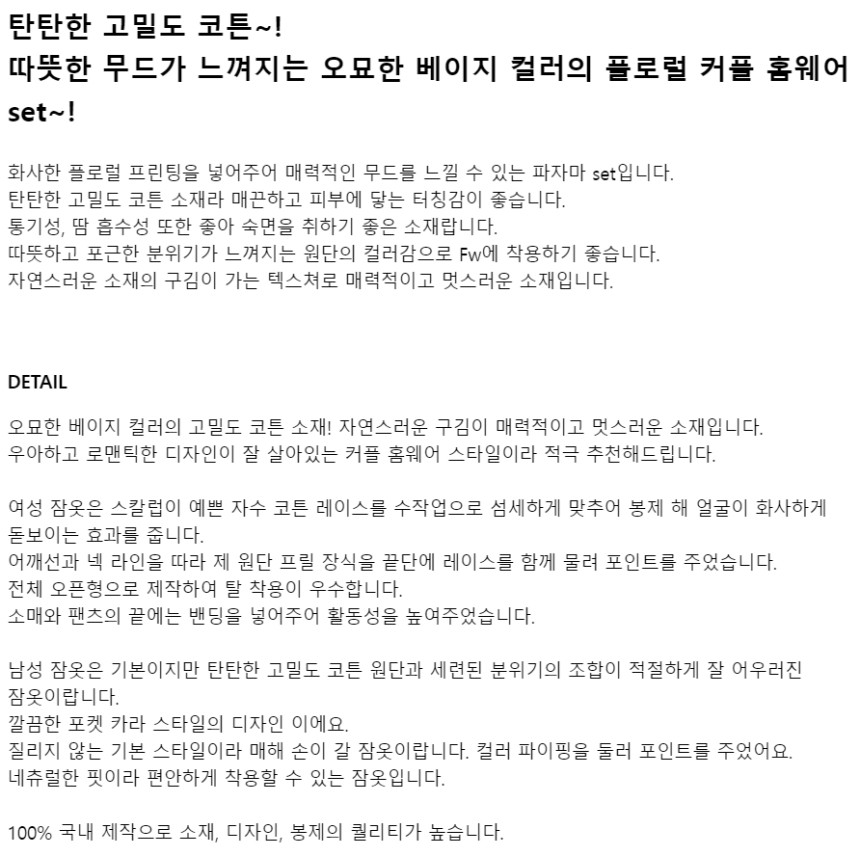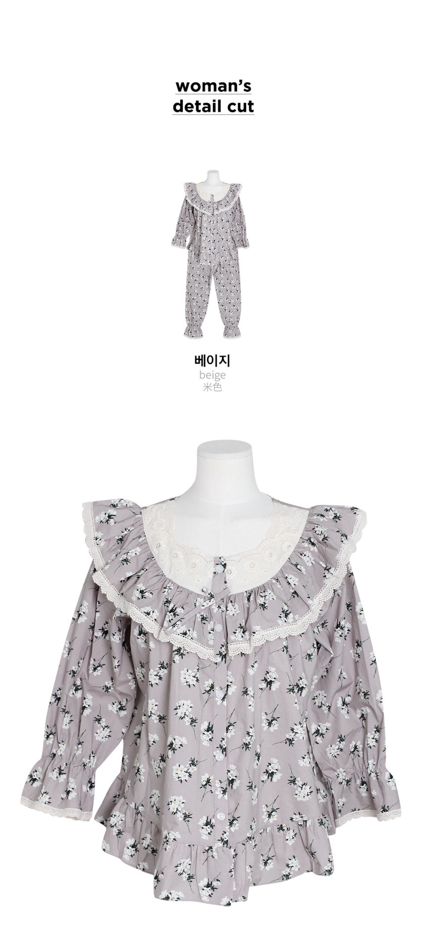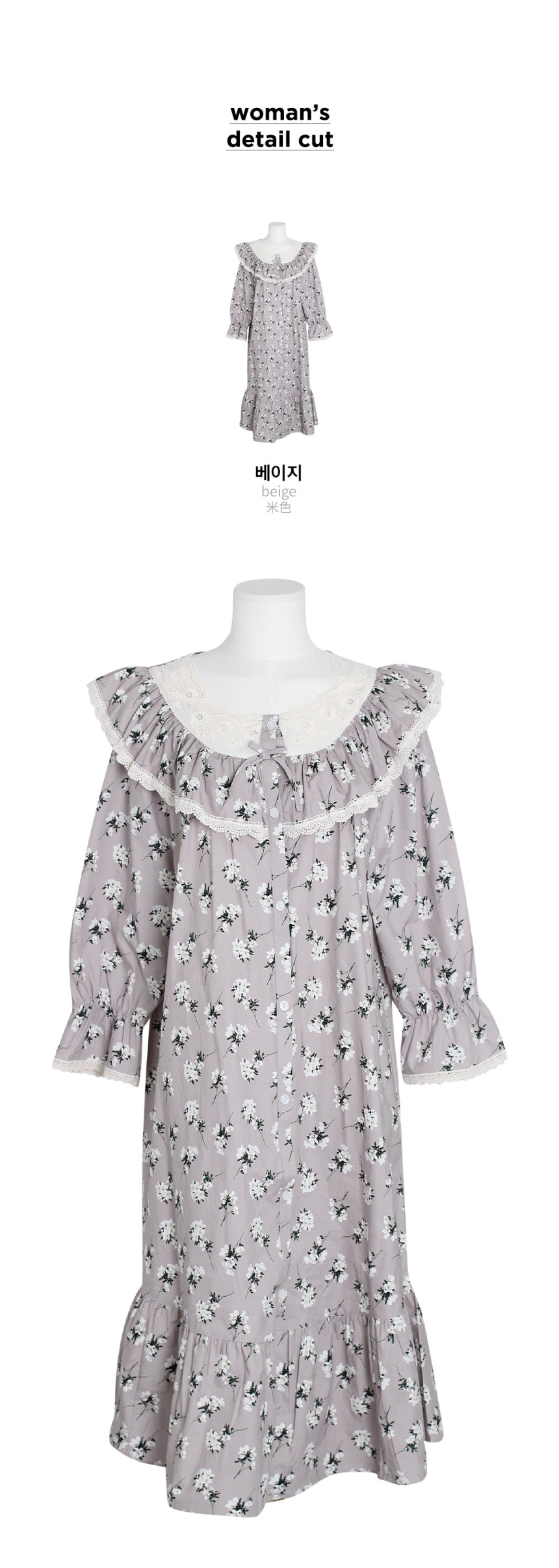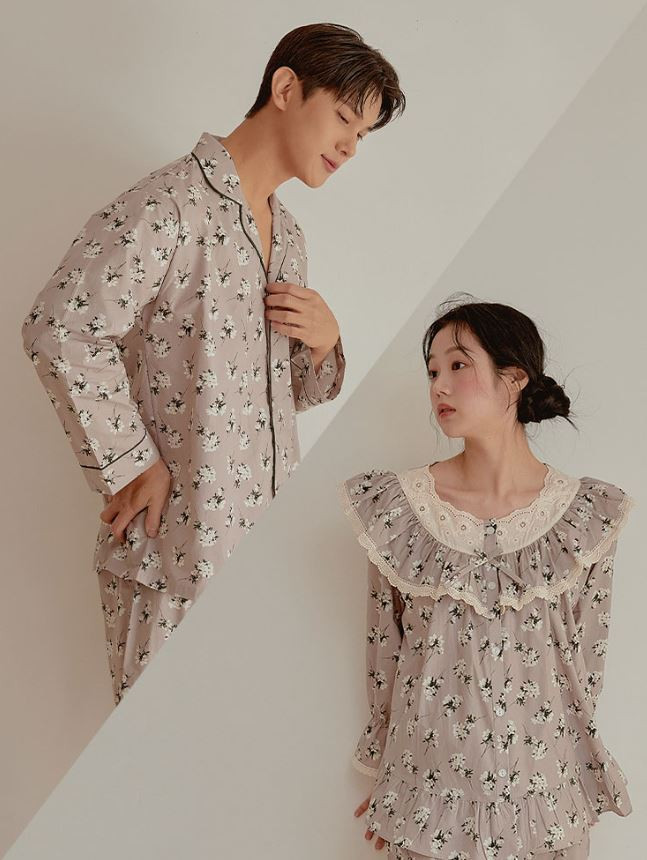 여성 남성 커플 베이지블룸 원피스 투피스 수면 잠옷