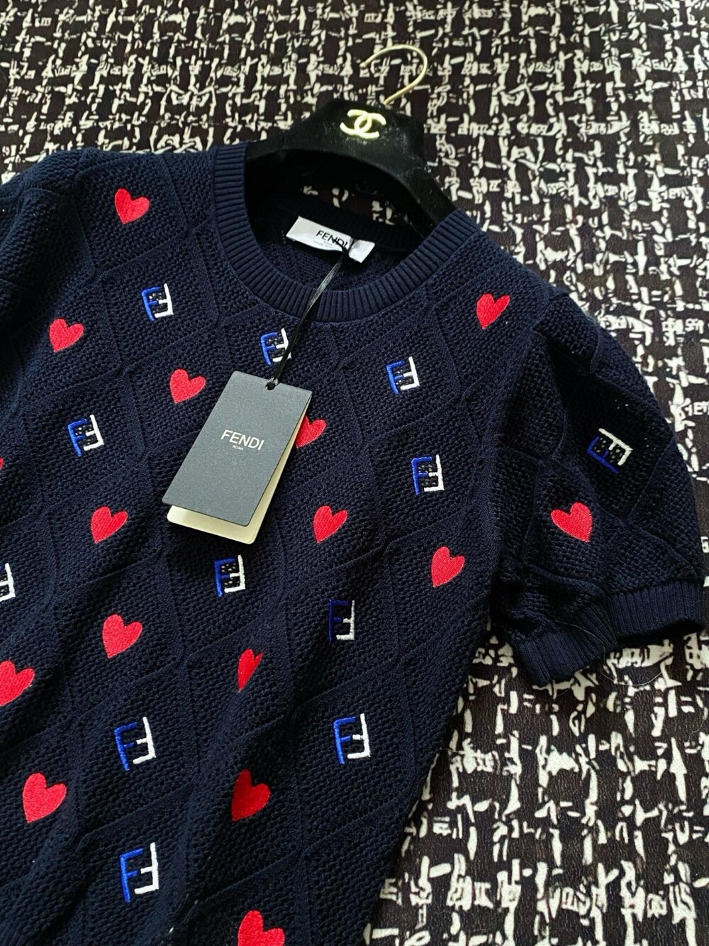 B. FF 하트 반소매 니트