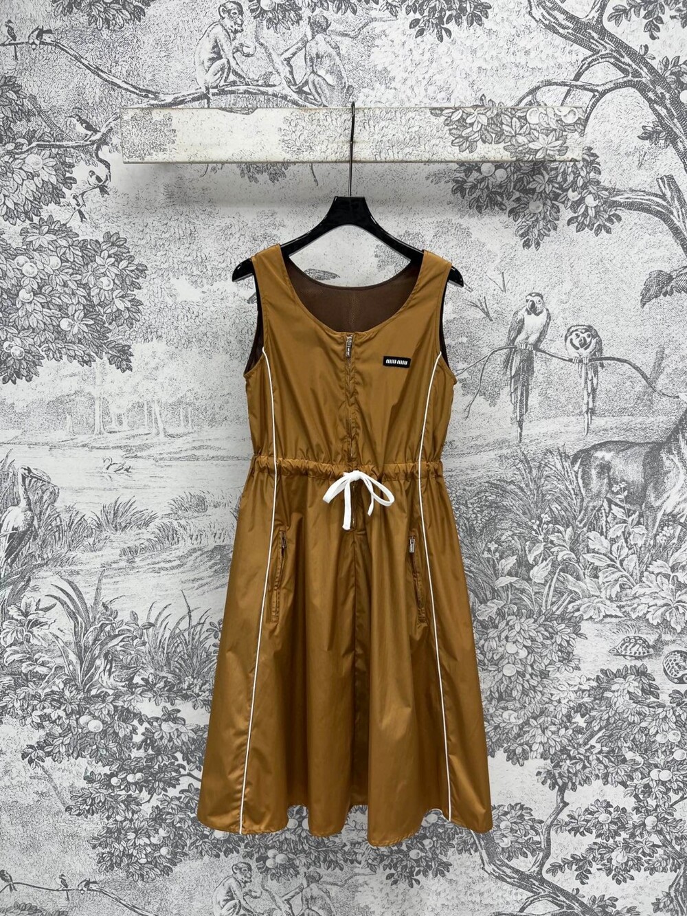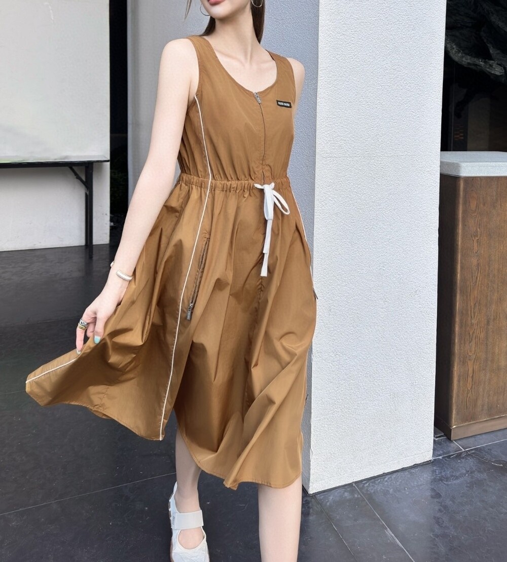 K. 뮤뮤 머스타드 민소매 리본 원피스