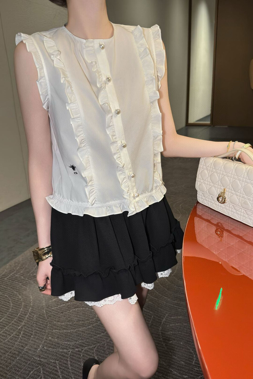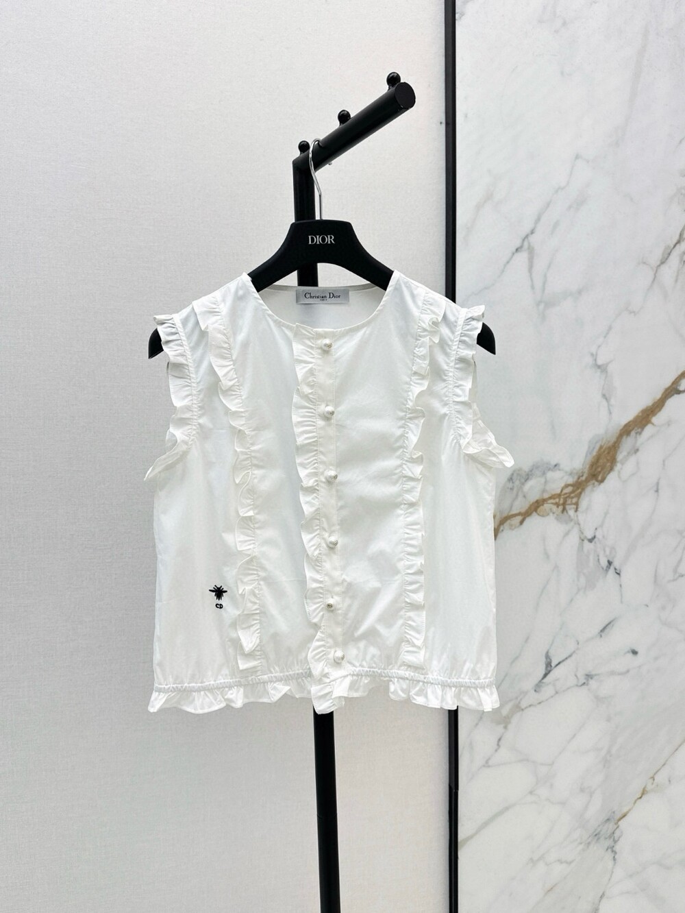 N. CD 진주 레이스 민소매 블라우스