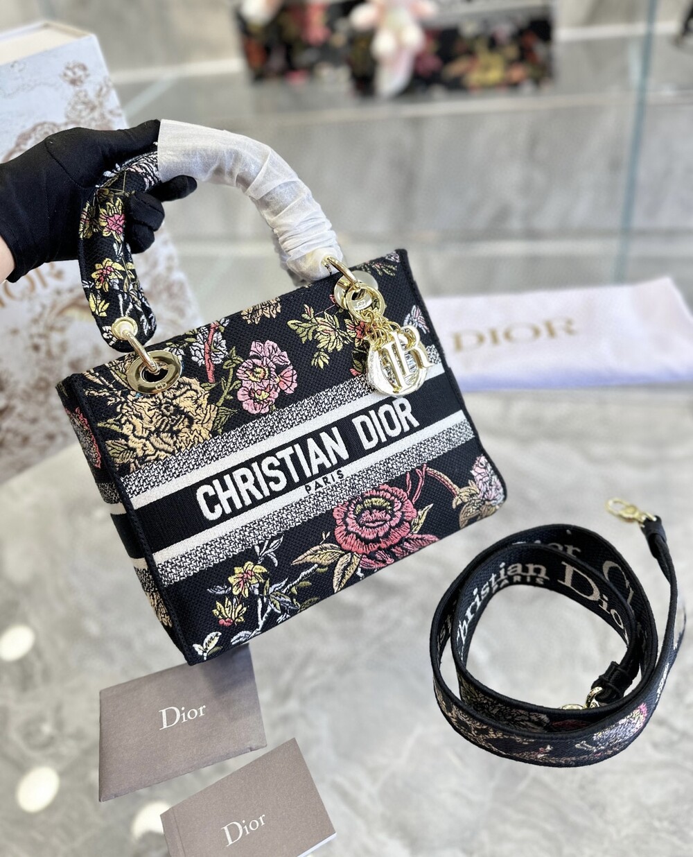 디올 레이디 플라워 블랙