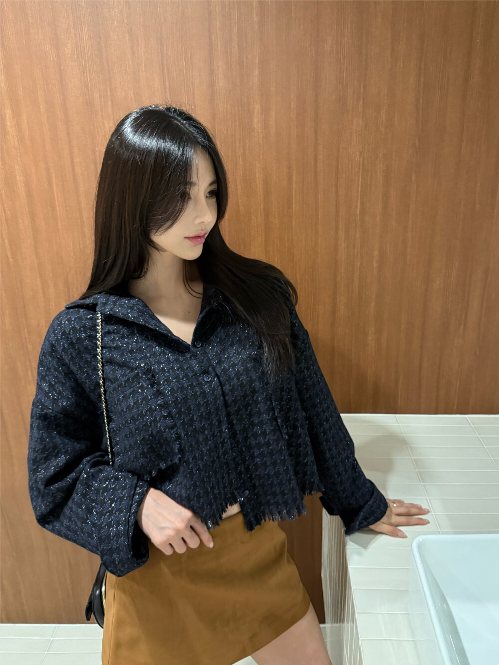 특히 셔츠 카라 디자인과 크롭 기장감이 더해져 자켓으로는 세련되고,
