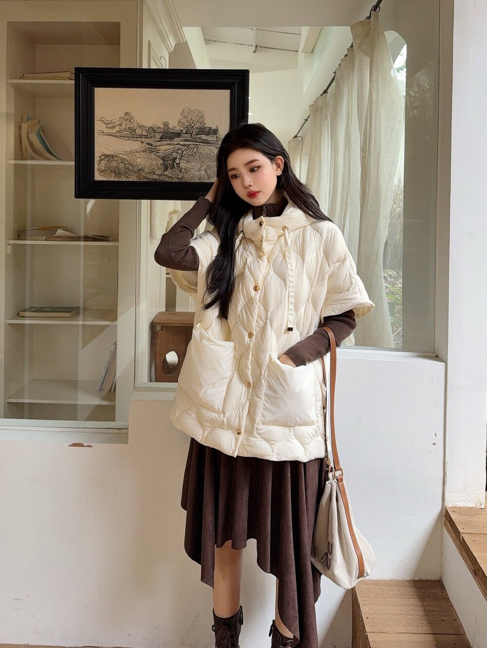 R. CD 울 니트 케이프 반집업