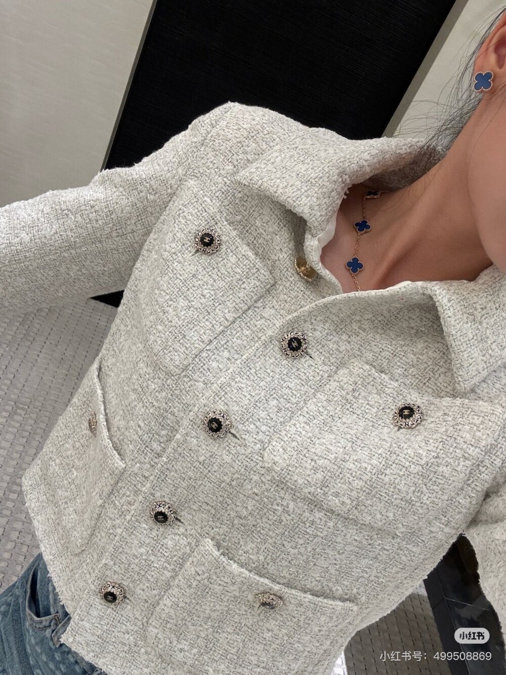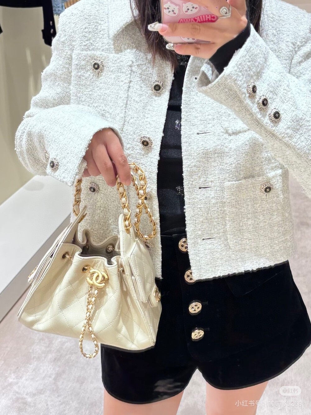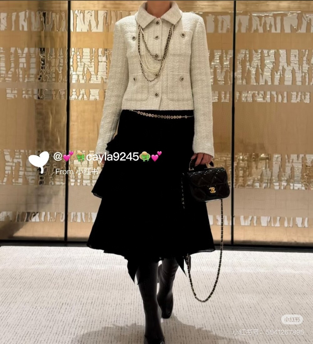 B. 코코 체인 트리밍 화이트 트위드 자켓