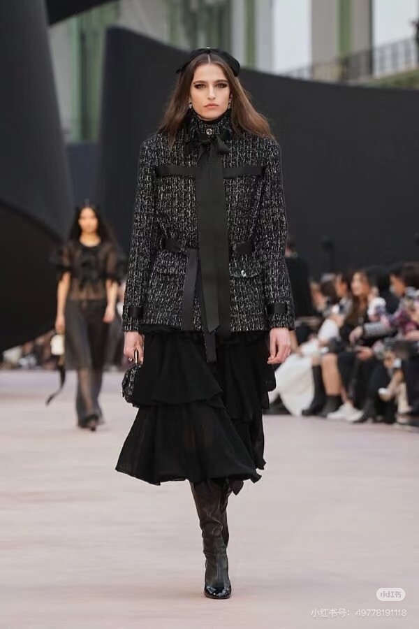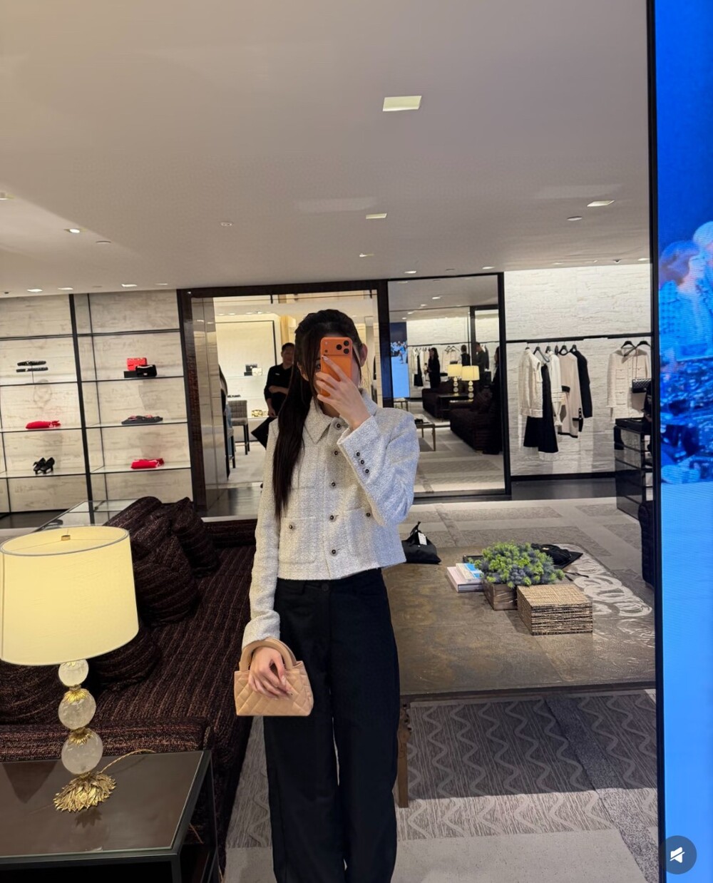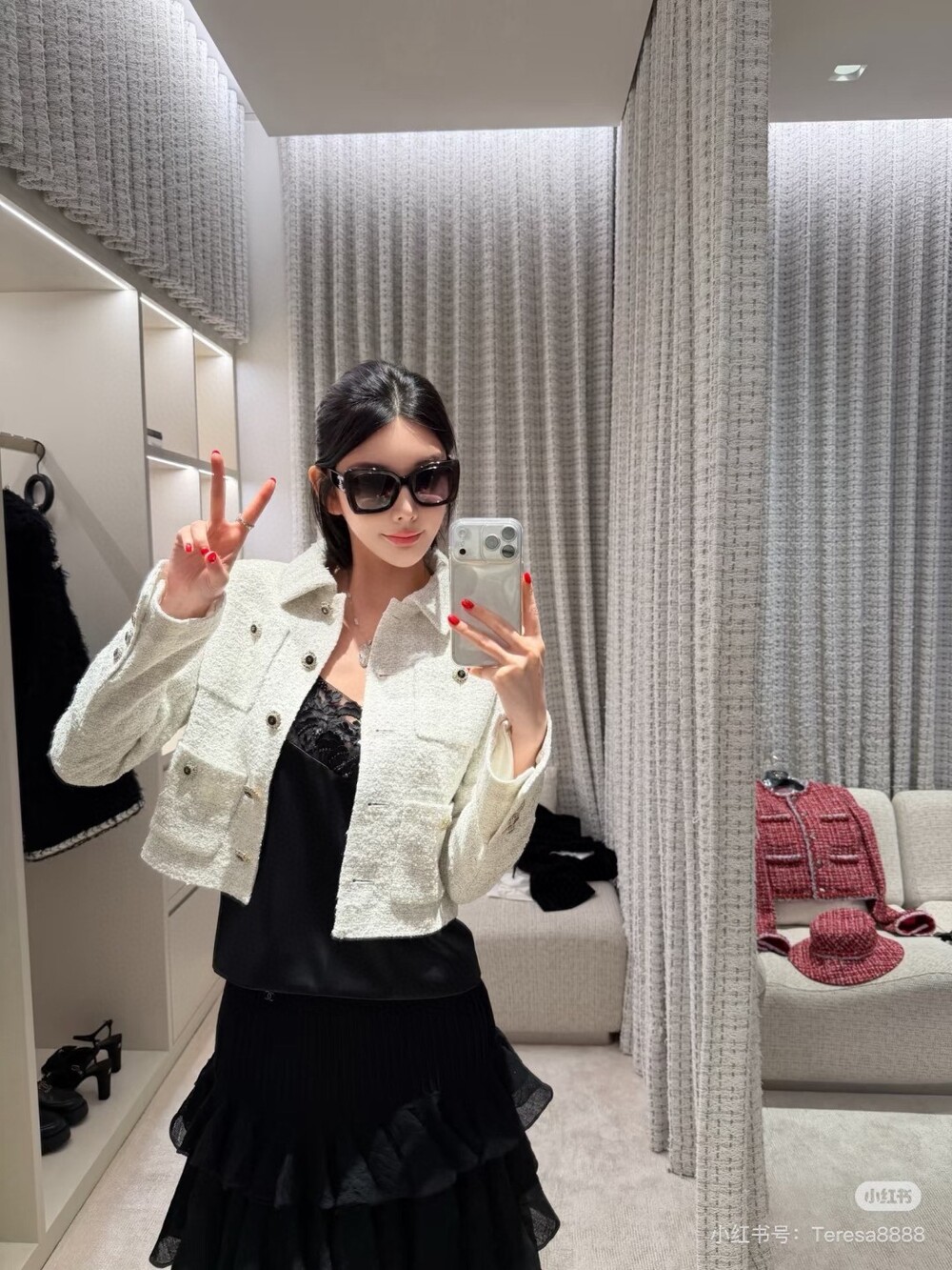 B. 코코 체인 트리밍 화이트 트위드 자켓