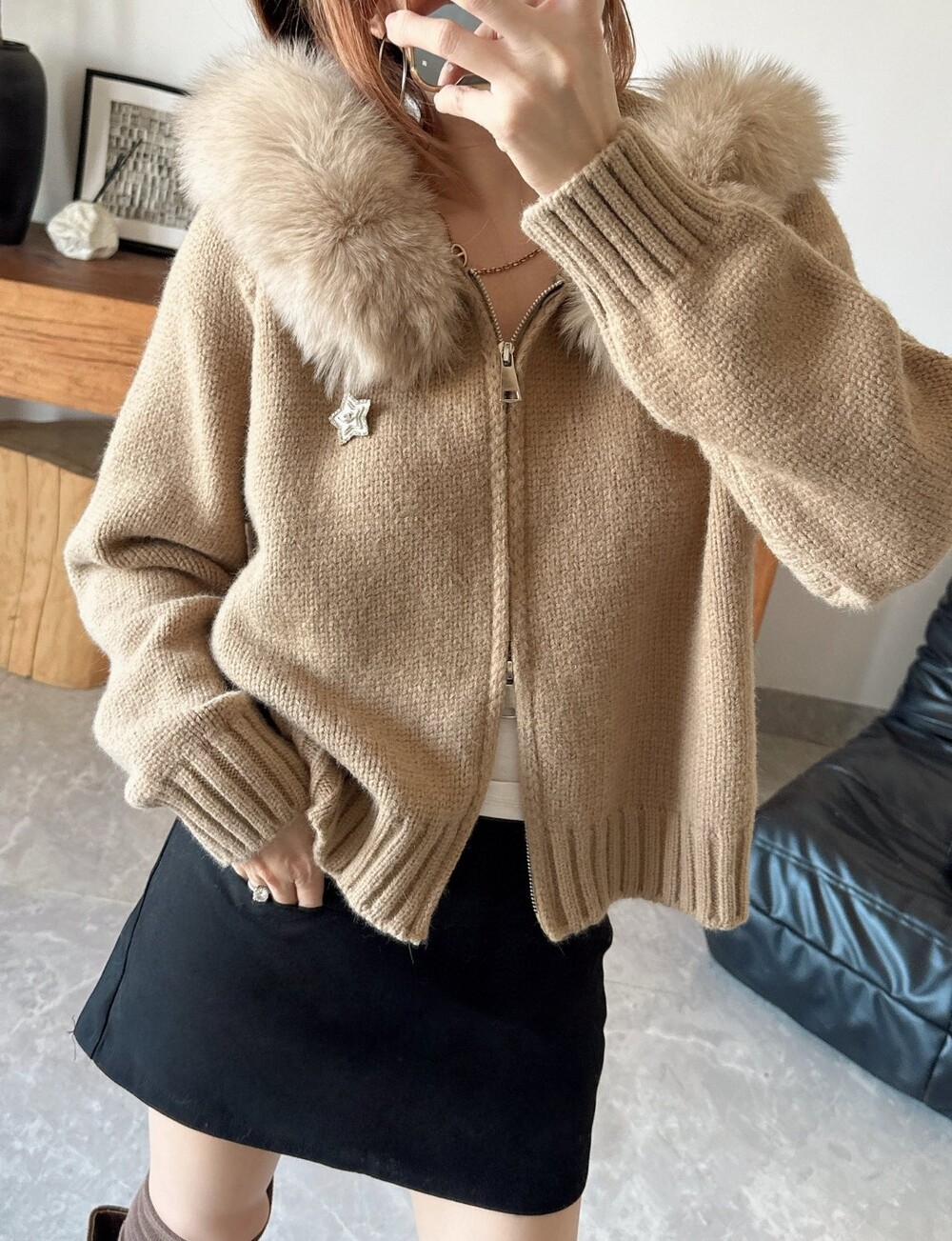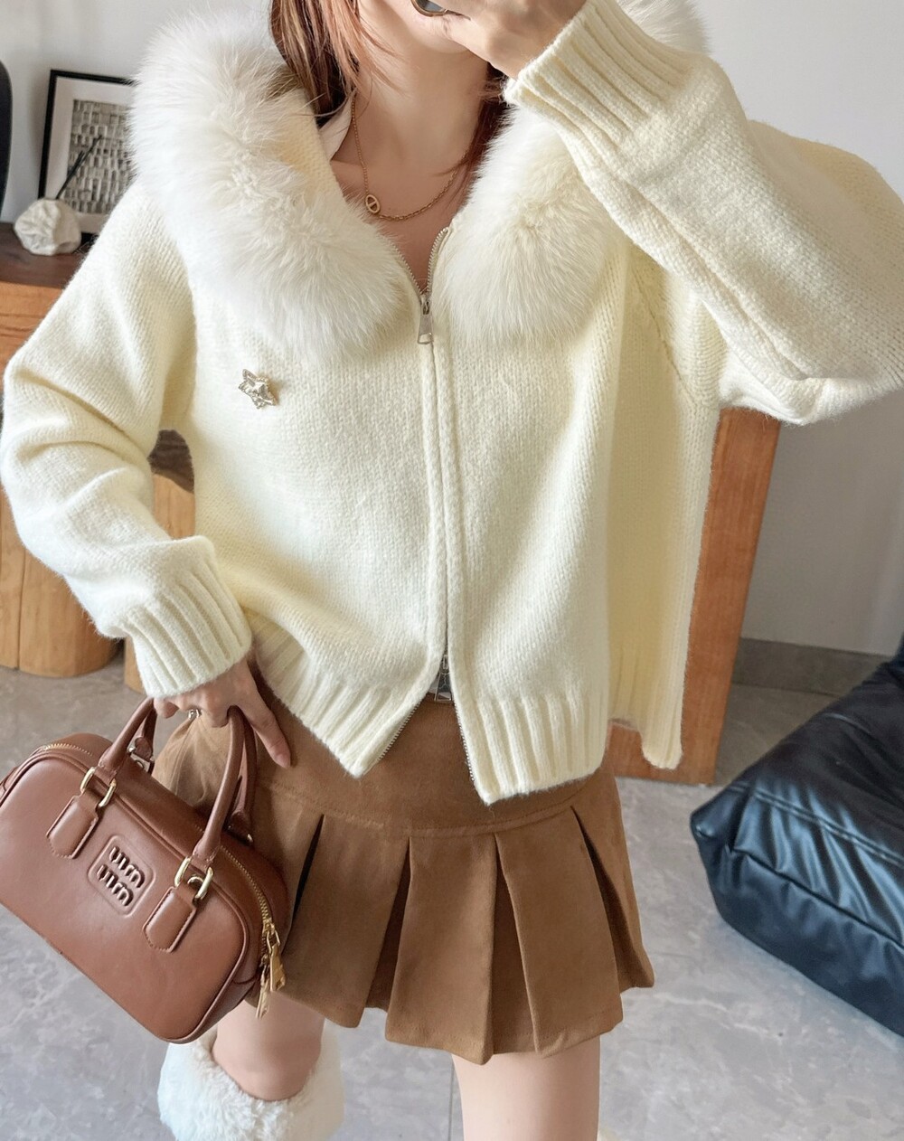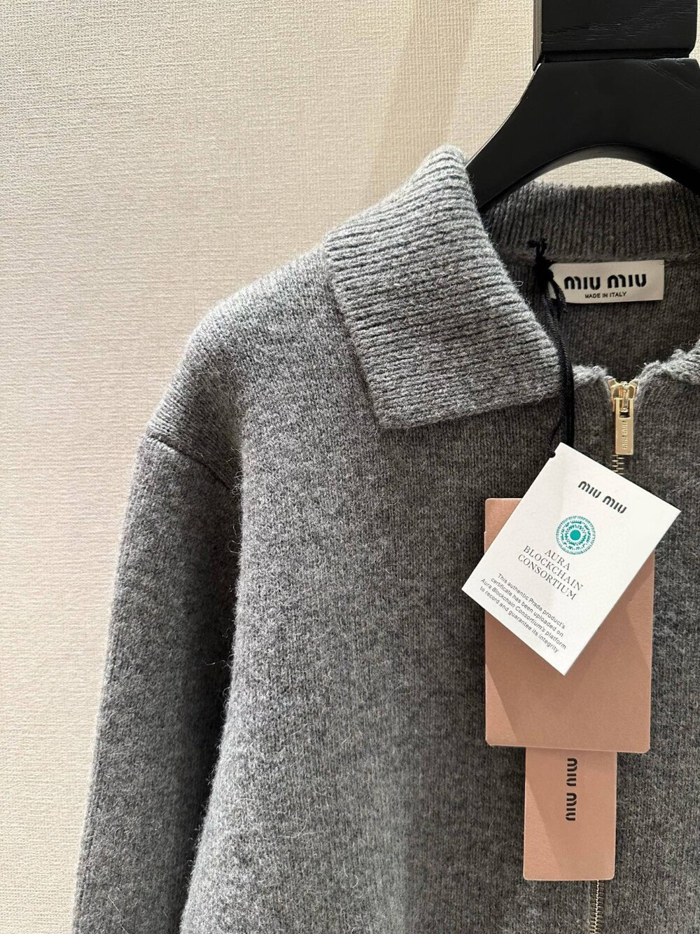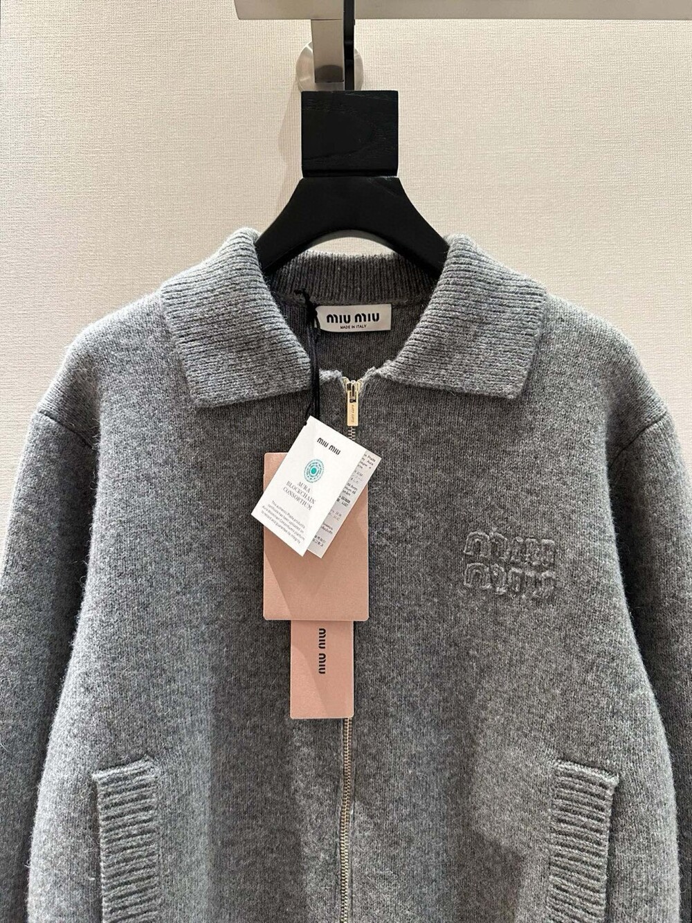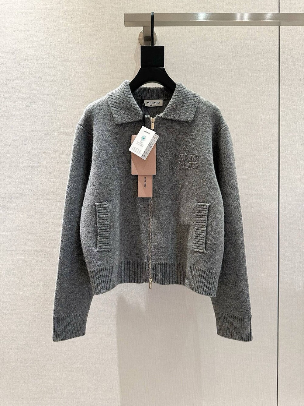 K. 뮤뮤 카라 니트 포켓 집업