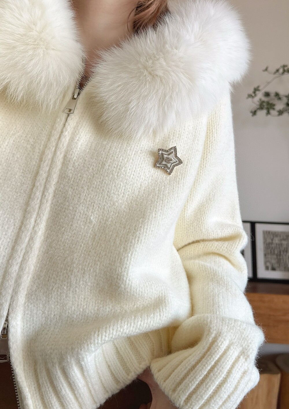 E. CC 스타 브로치 폭스 후드 집업