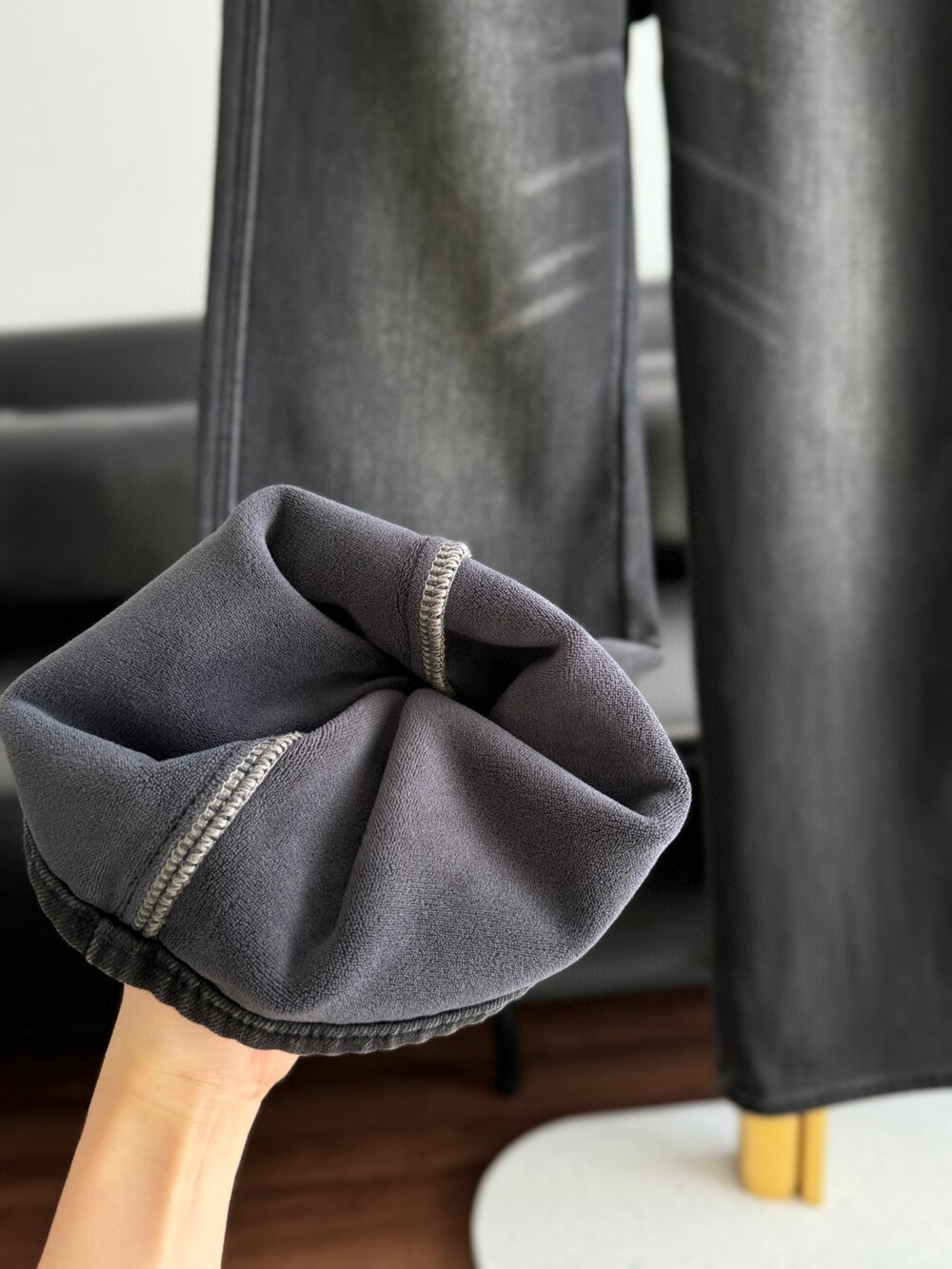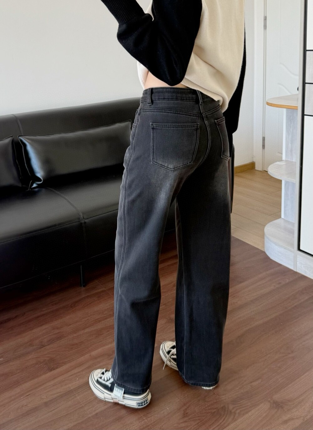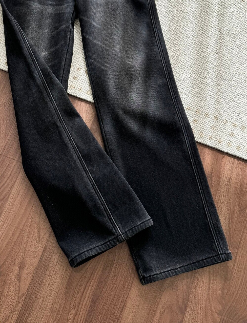 O. Row 플리스 안감 흑청 와이드진