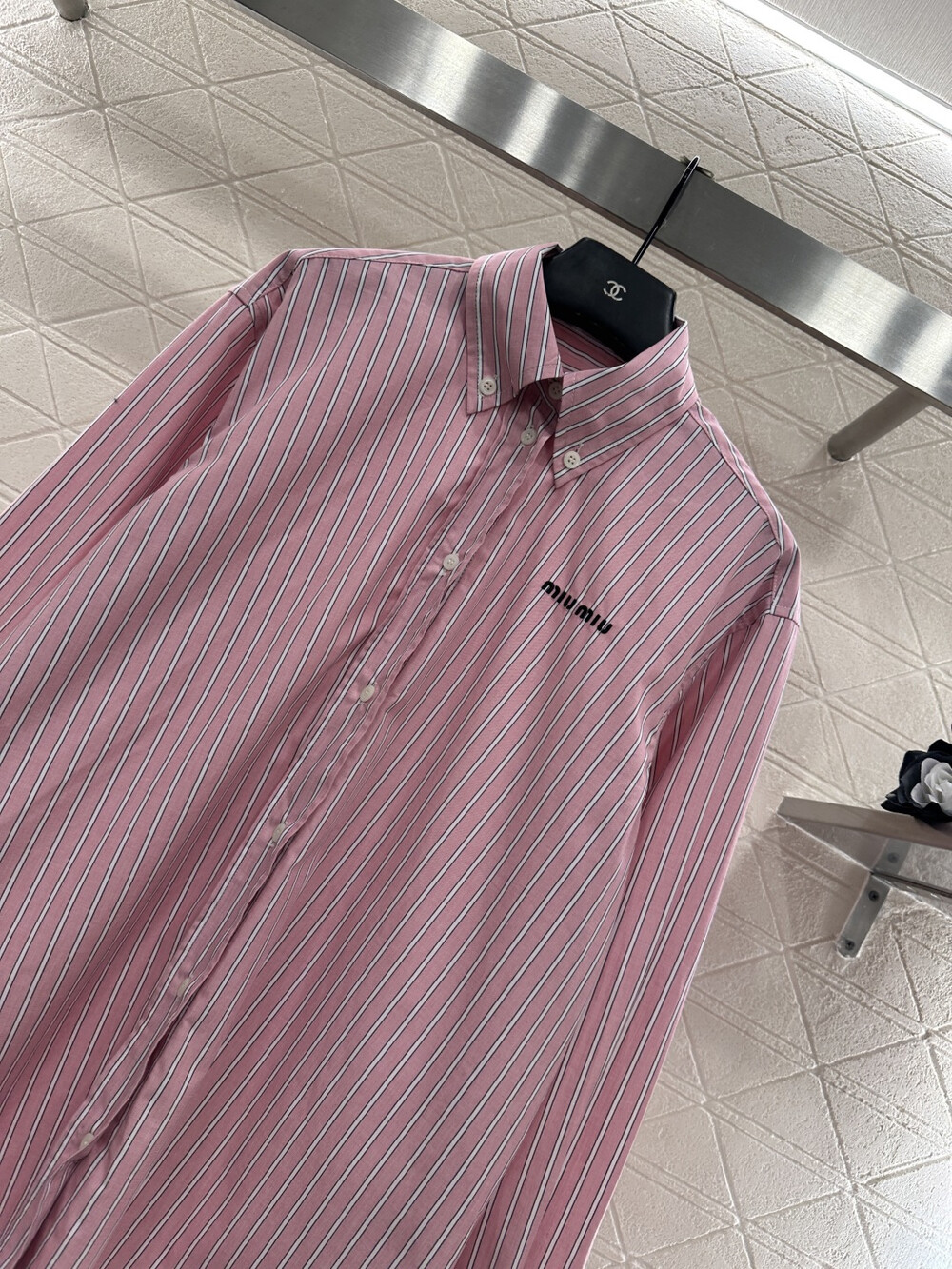 D. 뮤뮤 스트라이프 셔츠 핑크