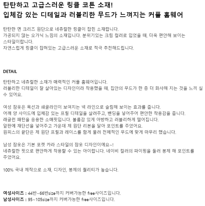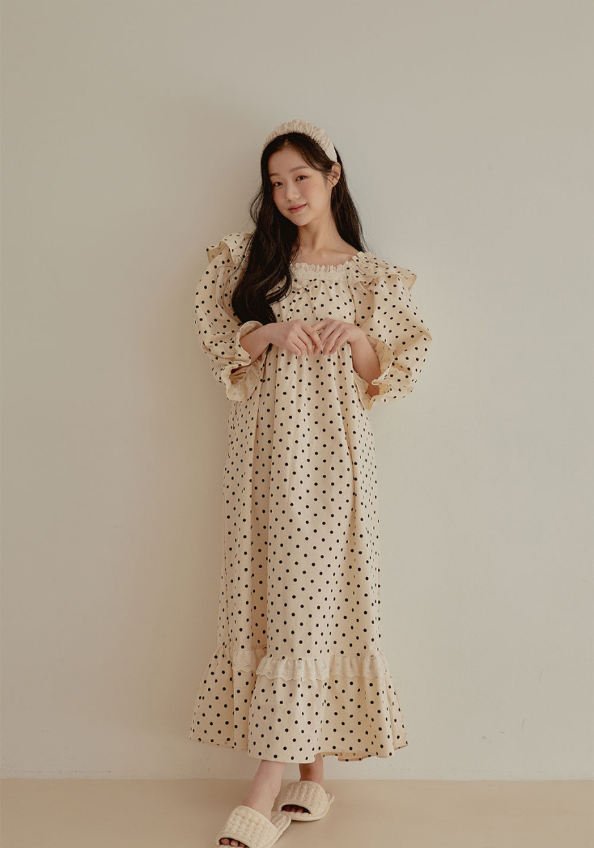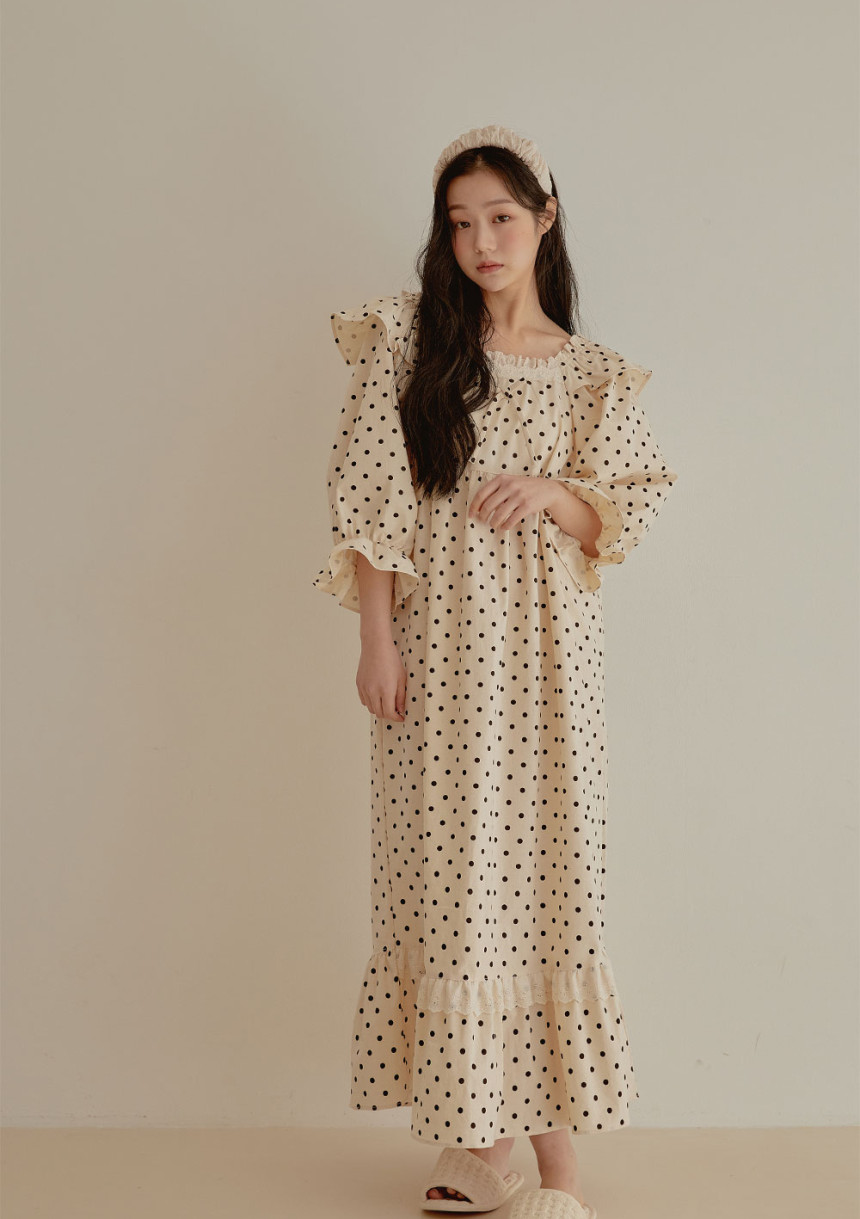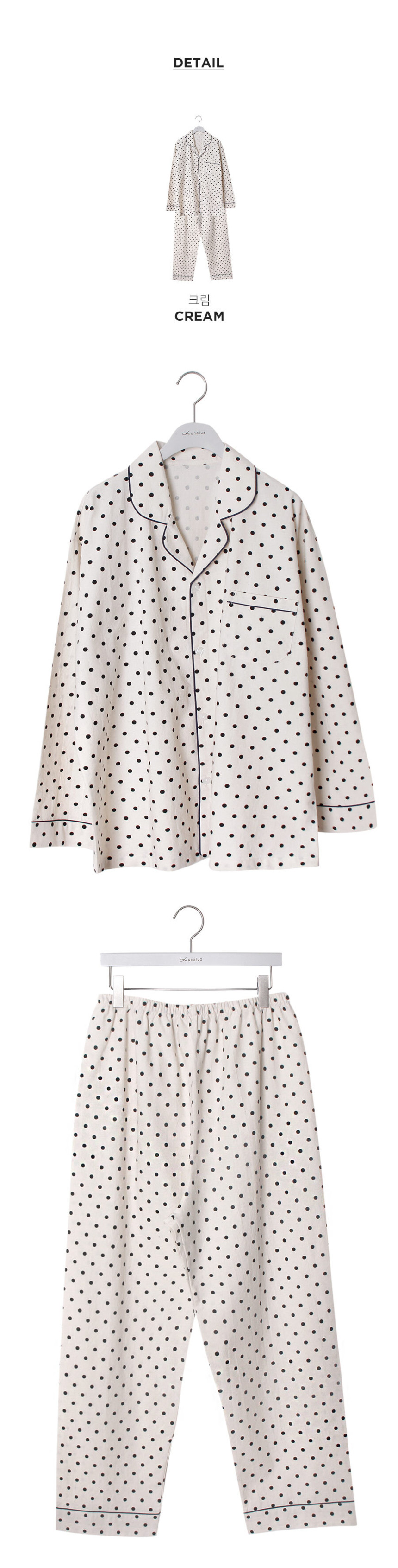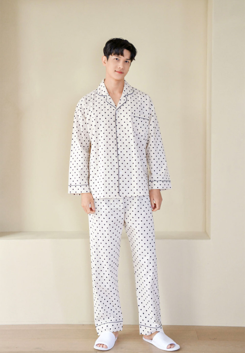 여성 남성 커플 도트올슨 원피스 투피스 수면 잠옷