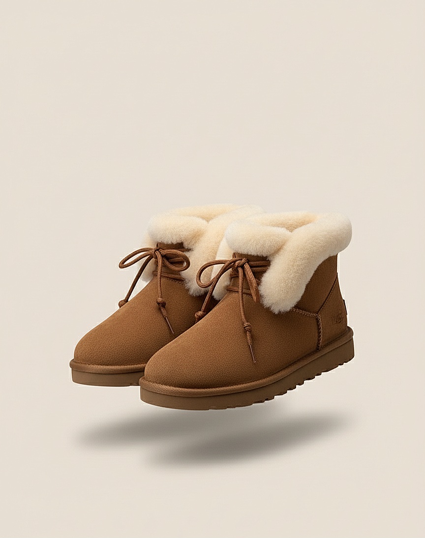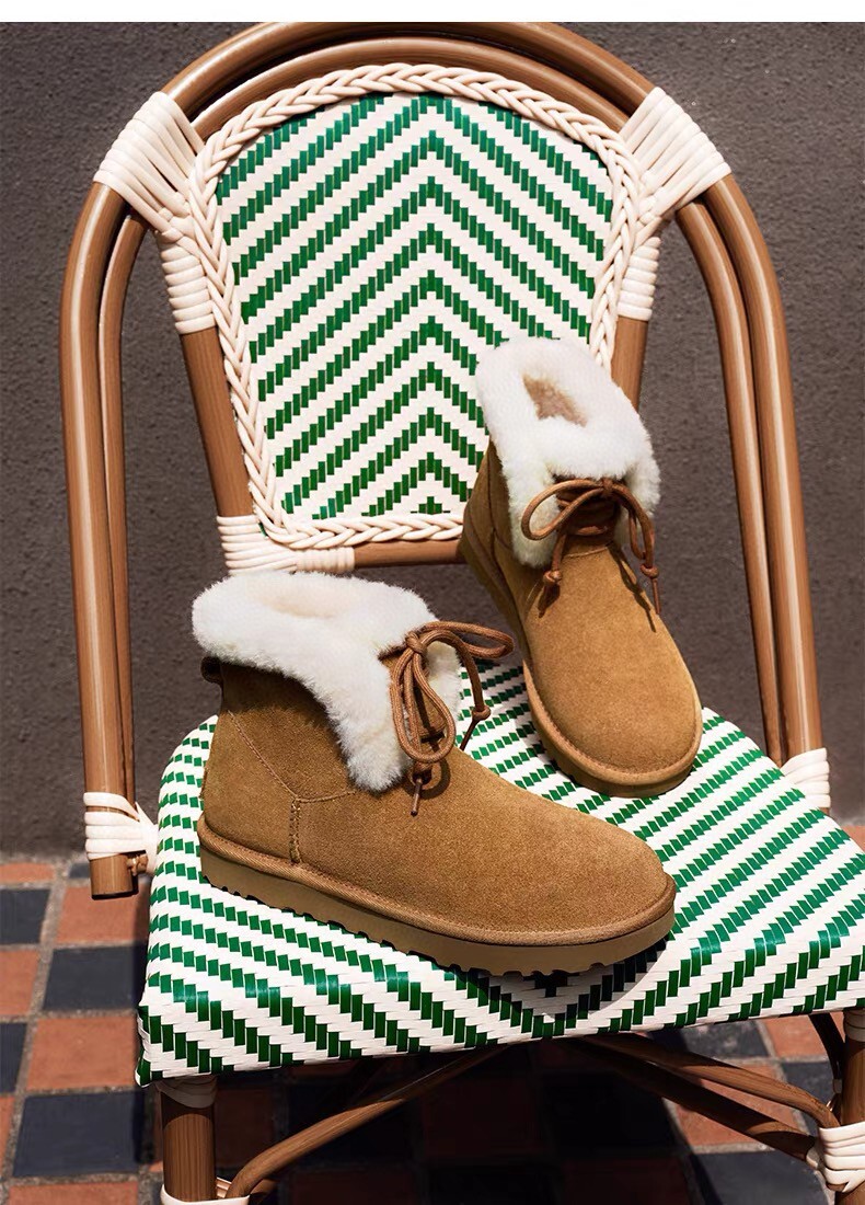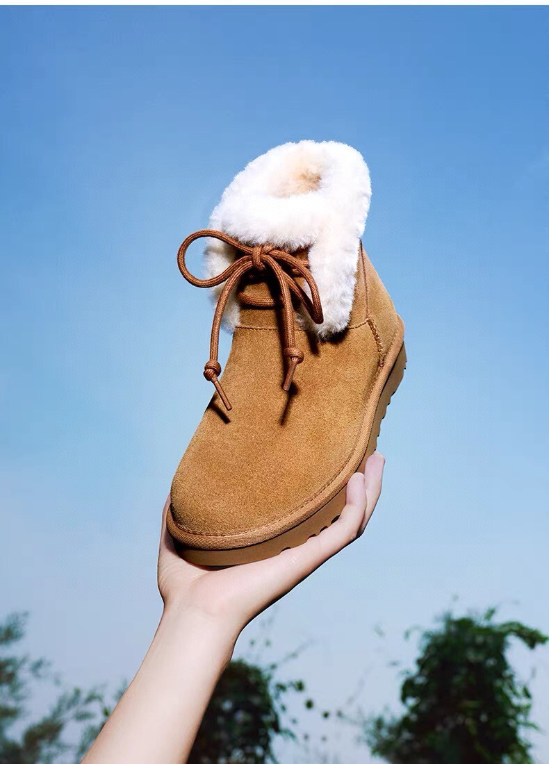 디테일: 부드러운 양피 털 트리밍 & 레이스업 디자인