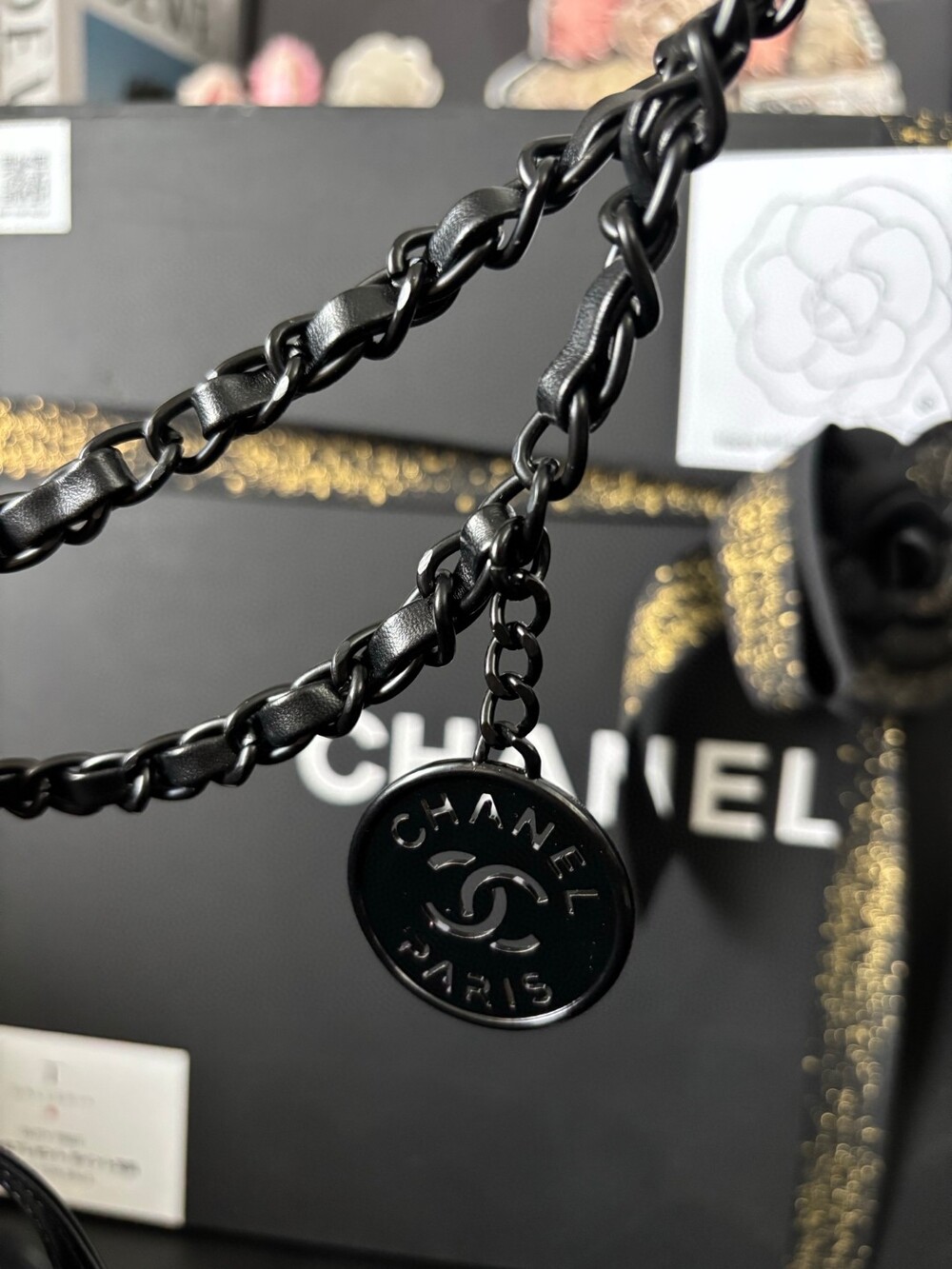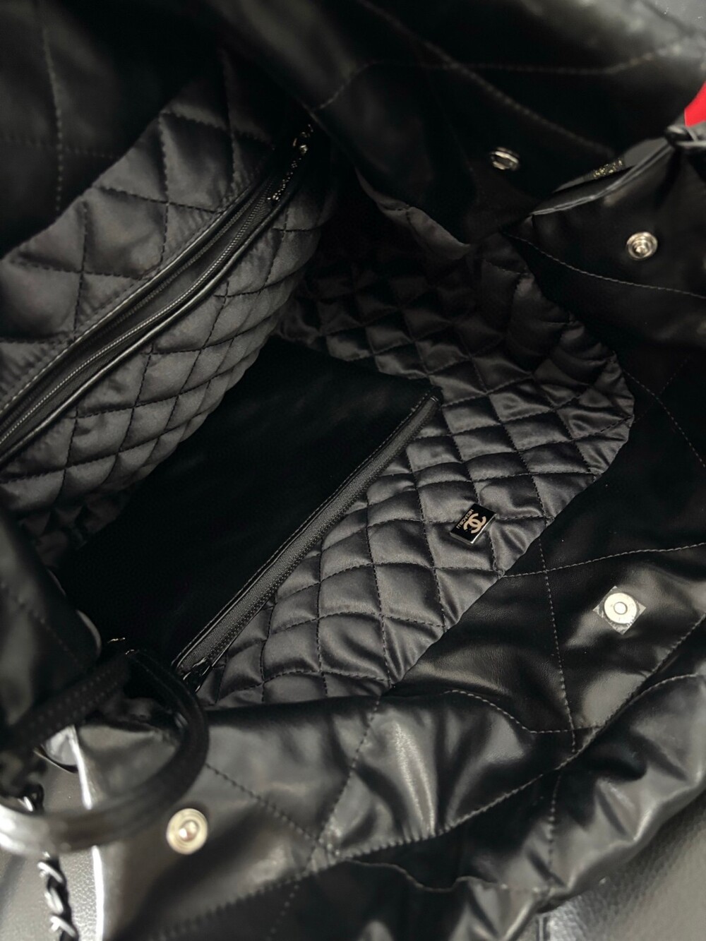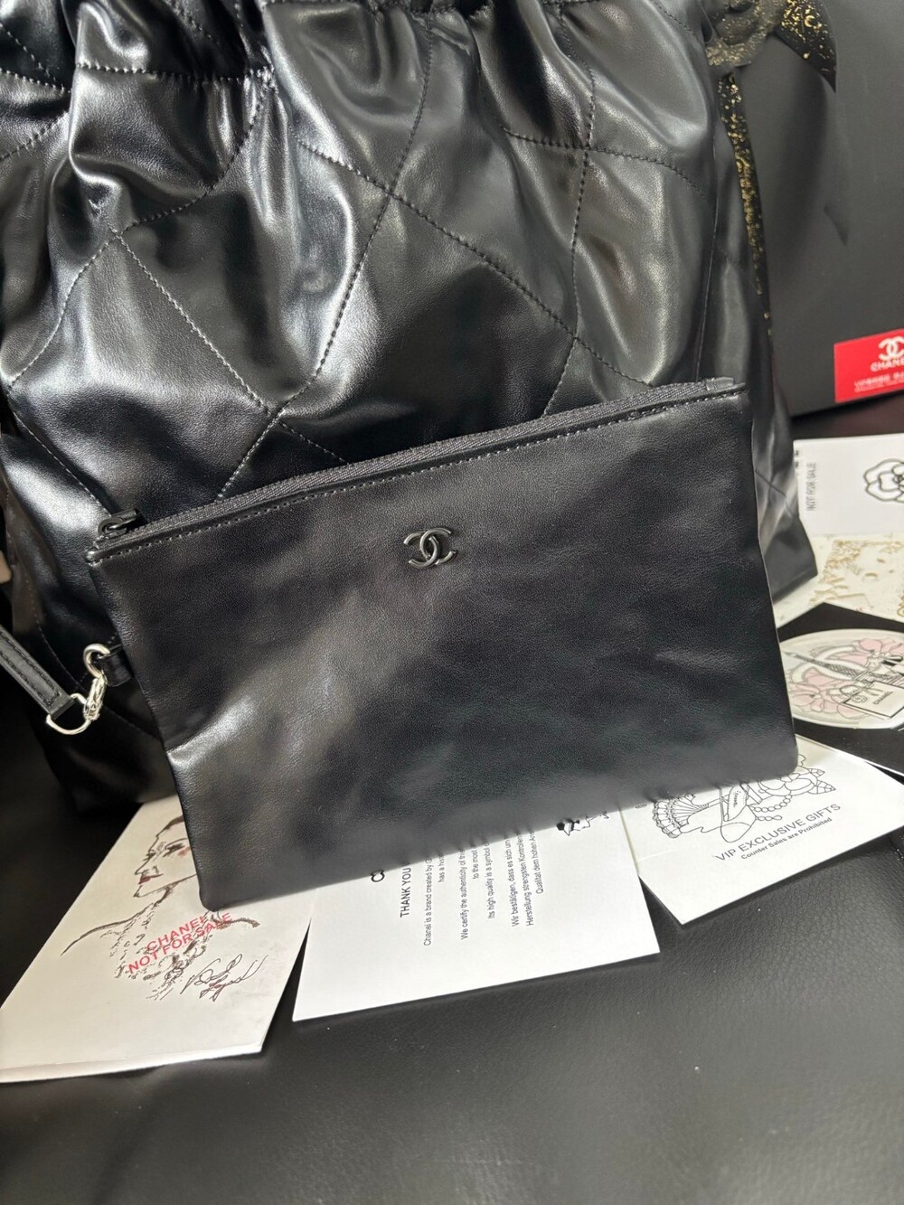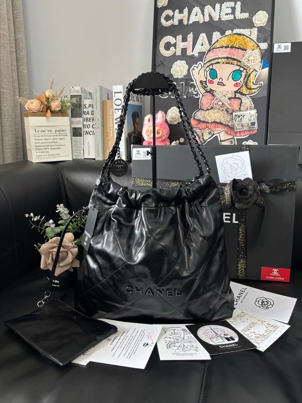 A stunning reinterpretation of the iconic Chanel 22 bag in a soft matte black finish.