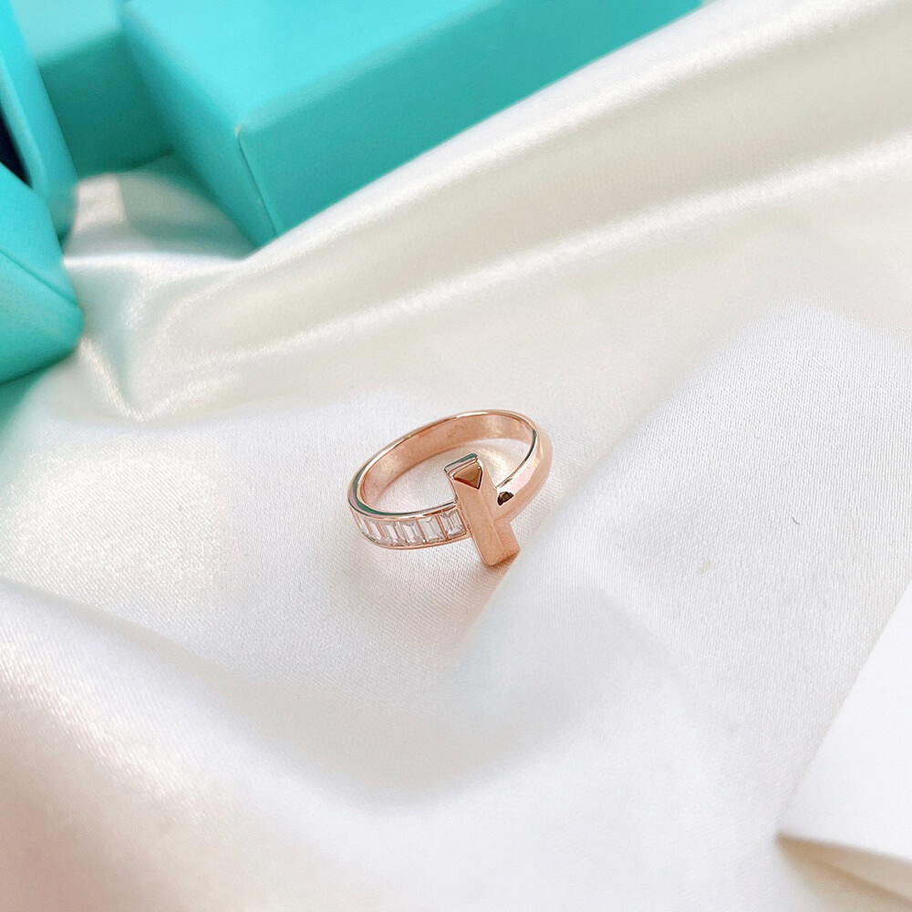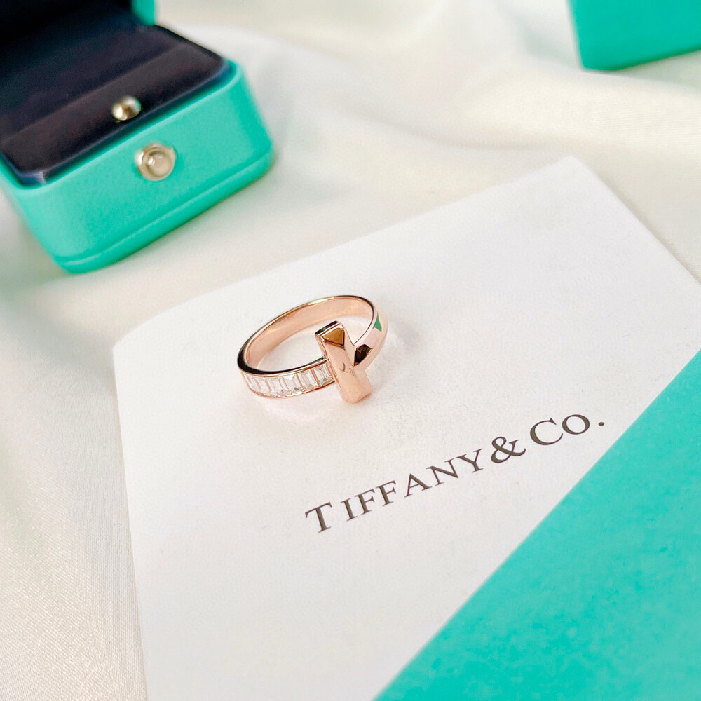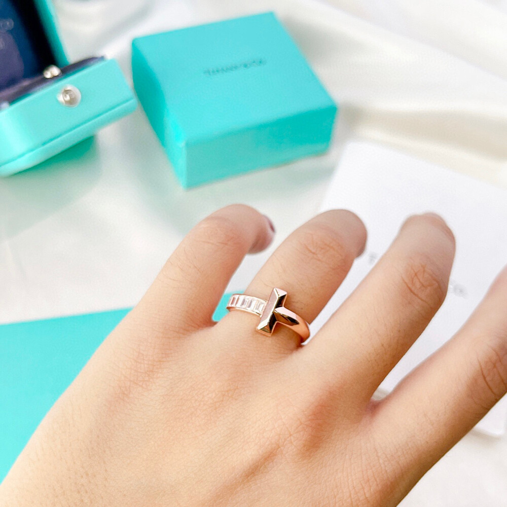 The latest Tiffany tiff T1 series single T row diamond ring Exclusive high-end custom Yang Mi Goddess same style The design shows exquisite elegance, low-key blooming confidence, very delicate and eye-catching. The original material is 925 sterling silver inlaid with platinum inlaid with brilliant-cut diamonds and elegant rose gold.