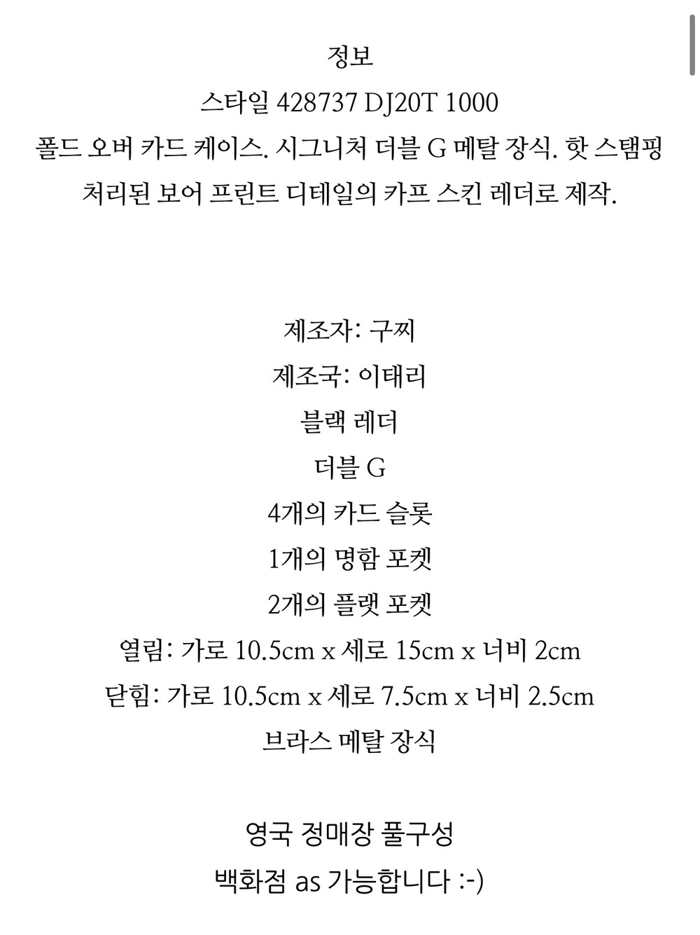[정매장바잉] 구찌 마몬트 명함 카드지갑 428737 DJ20T 1000 남성 마몽카드케이스