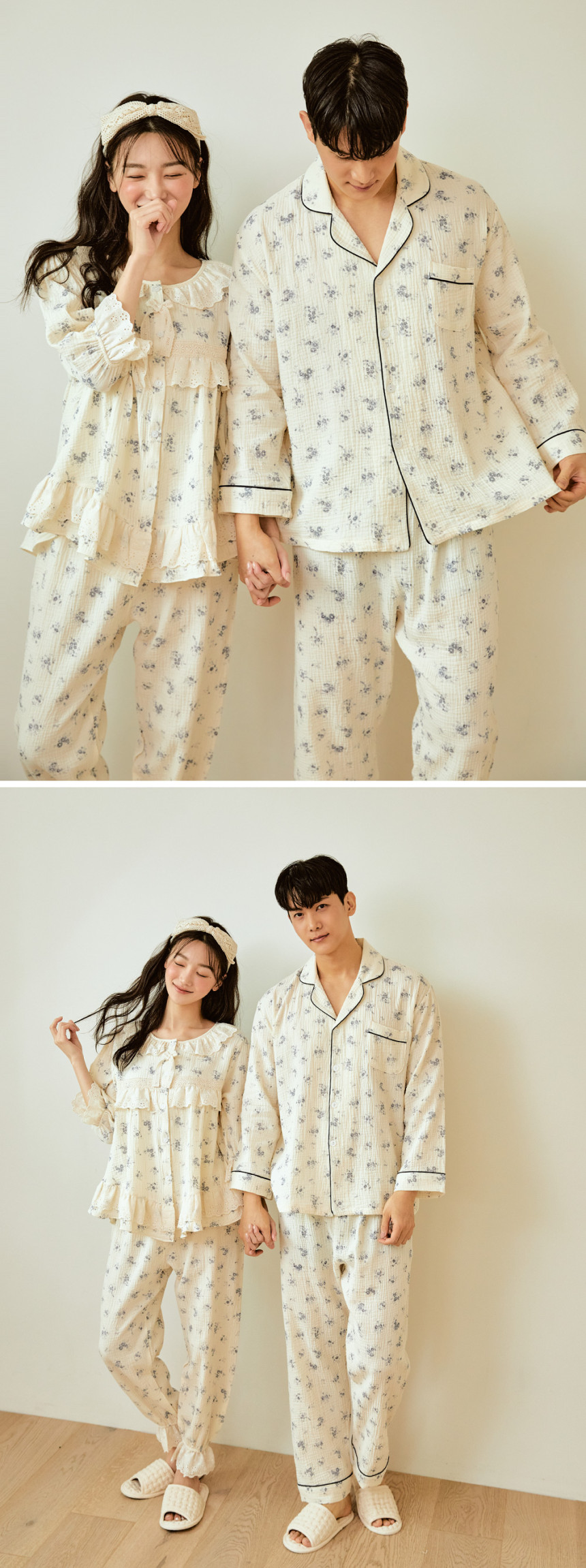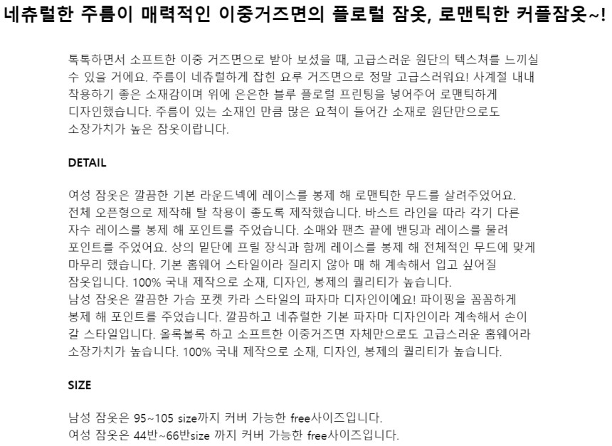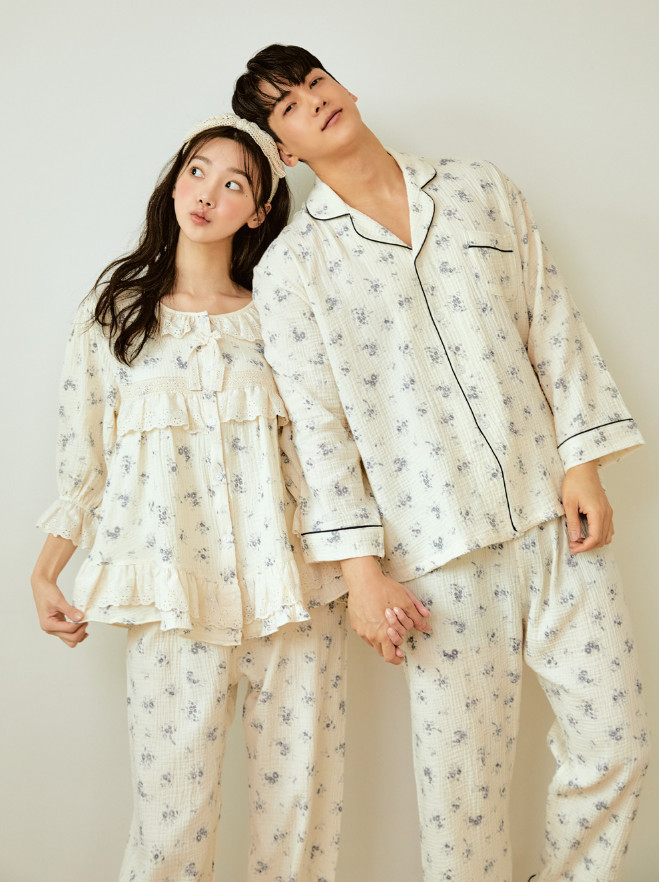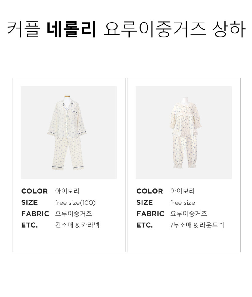 여성 남성 커플 네롤리 긴소매 민소매 원피스 투피스 수면 잠옷