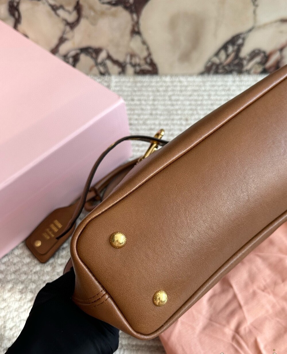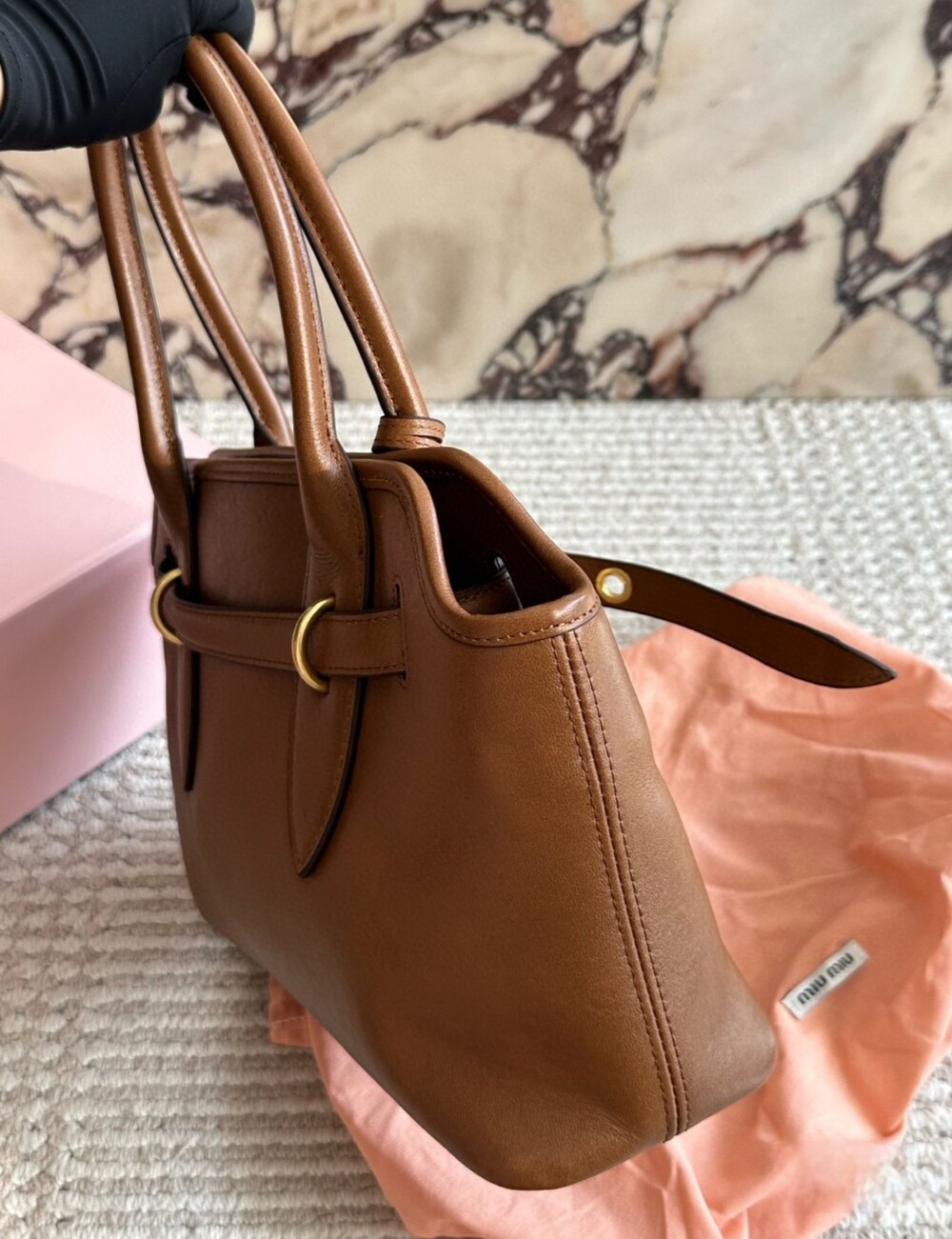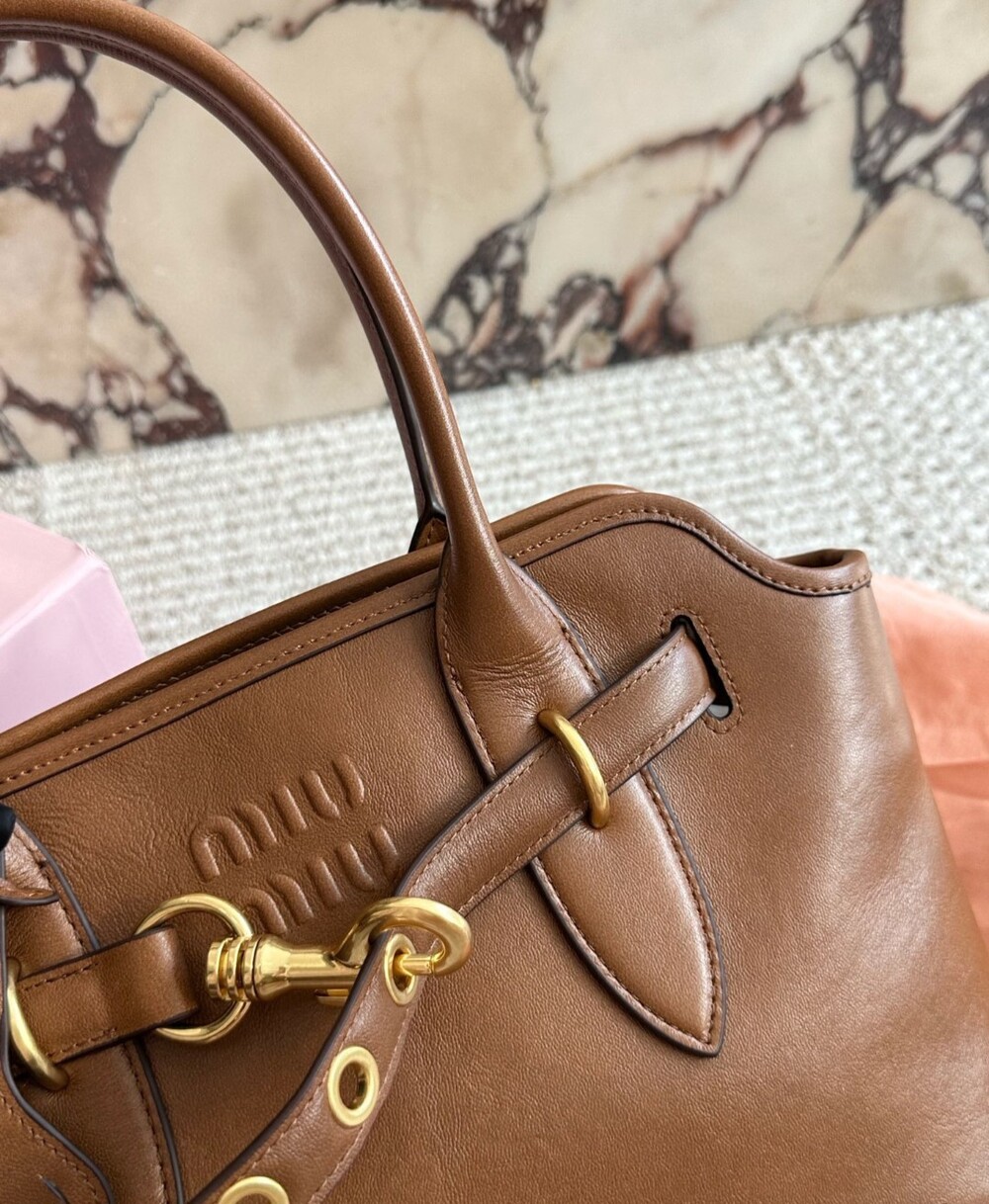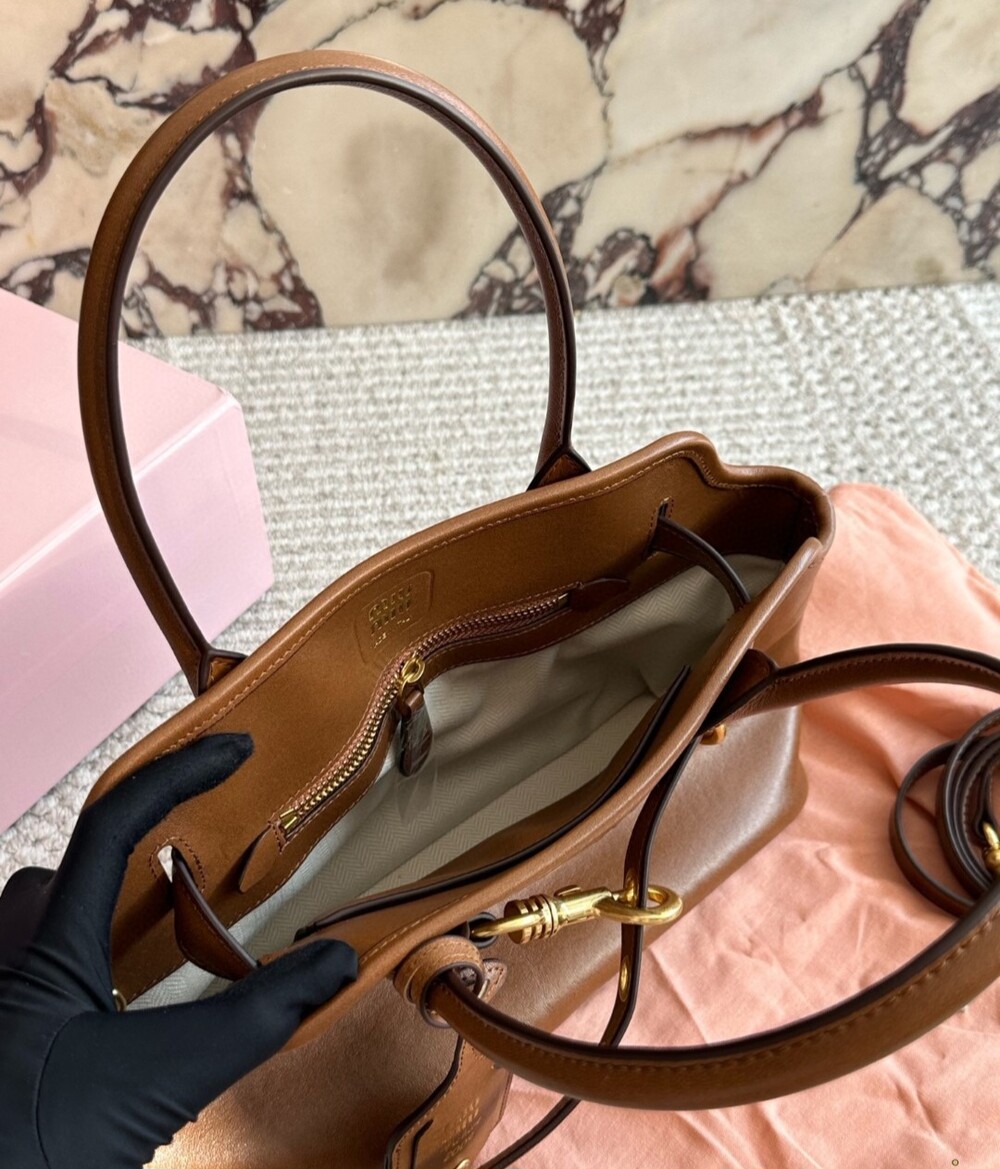 A statement piece for the modern MIU woman, blending heritage craftsmanship with effortless style.