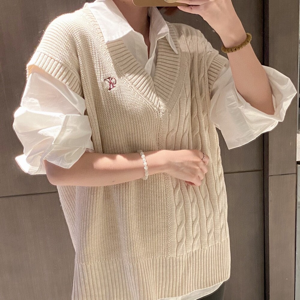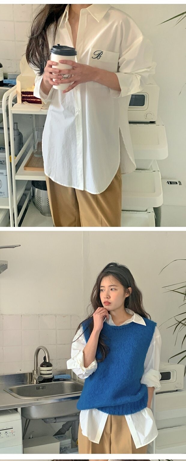 화이트셔츠+니트 조끼 조합 정말 예뻐요 😍