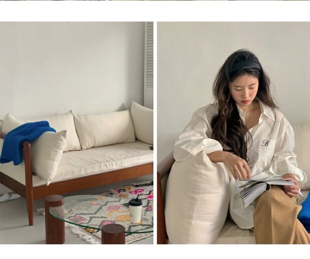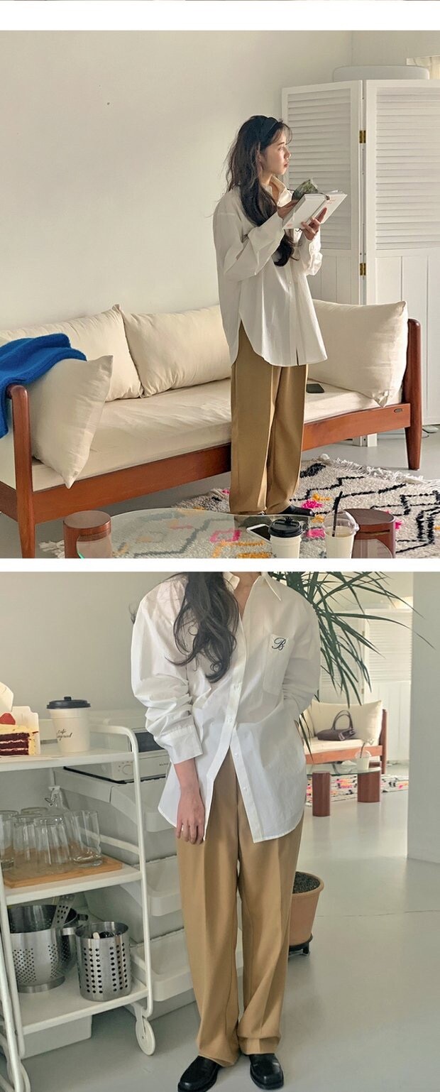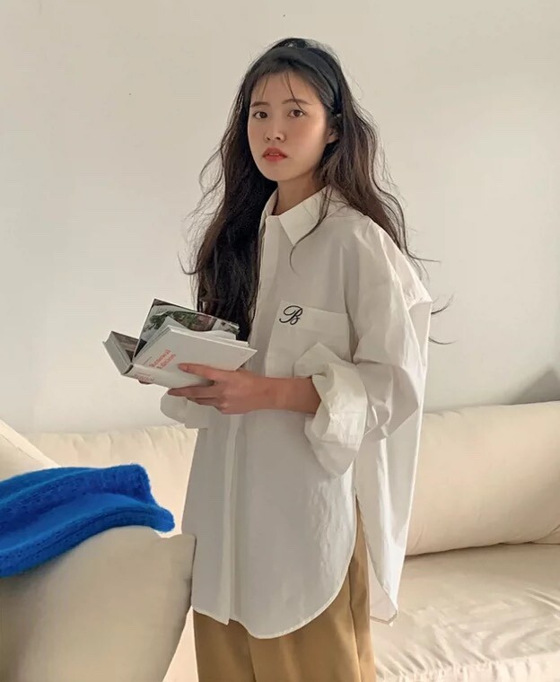 화이트셔츠 : 어깨너비52 가슴둘레112 앞기장73 뒤기장77 (40~70kg 추천)