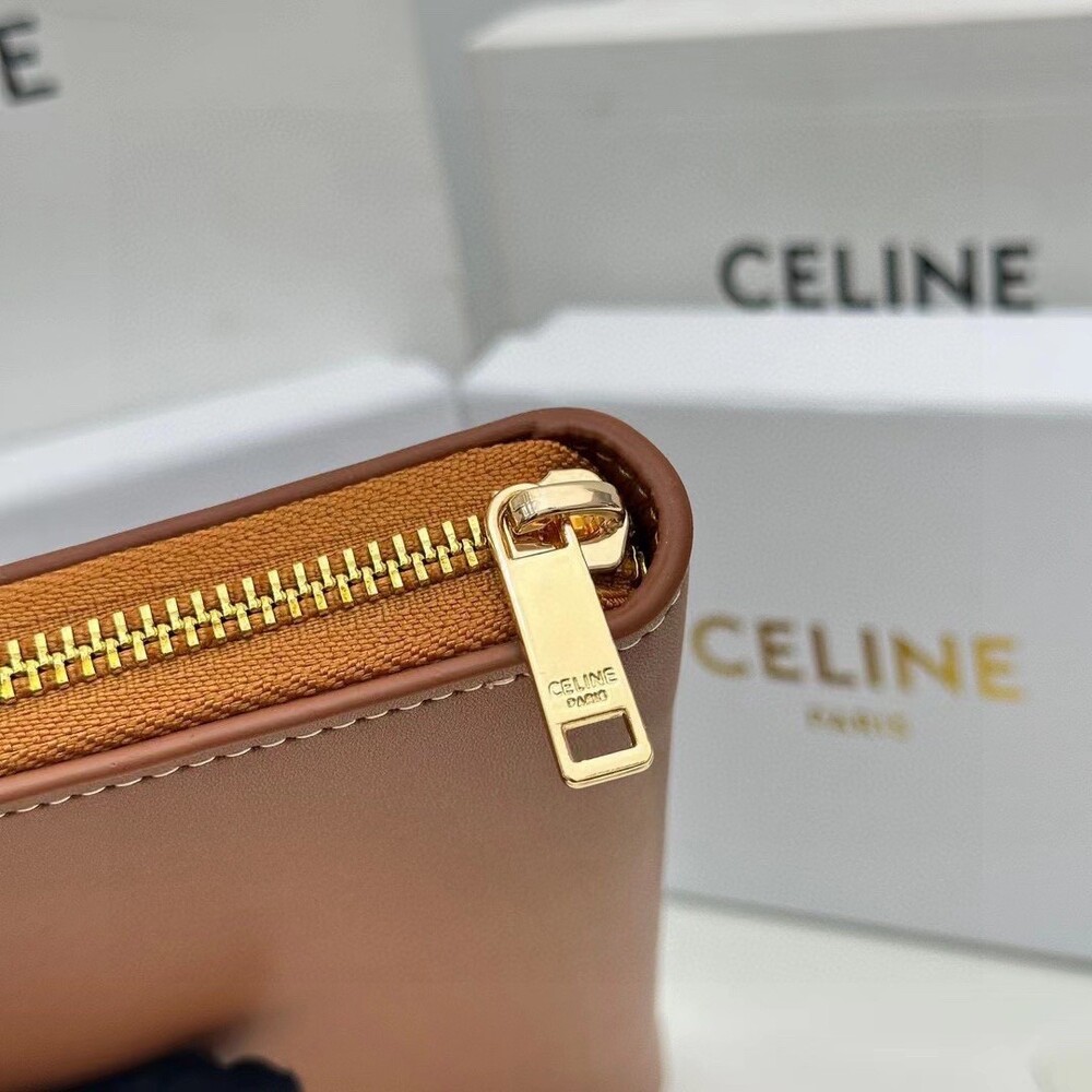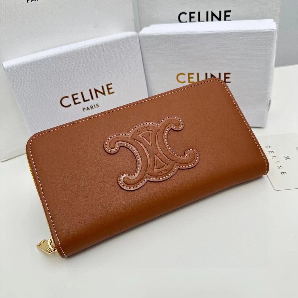 Celine A13 Color Brown Size 19*10.5*3.5Celine Counter Sync, TRIOMPHE CUIR Large Zipper Wallet, Smooth Calfskin Material, Calfskin Lining, Zipper Sealing, One Zipper Coin Bag, 12 Credit Card Slots, Two Corner Spaces, Two Flat Pockets