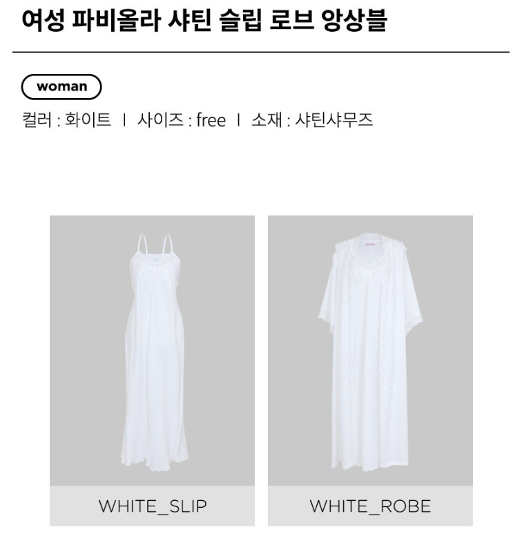 여성 파비올라 원피스 로브 가운 수면 잠옷
