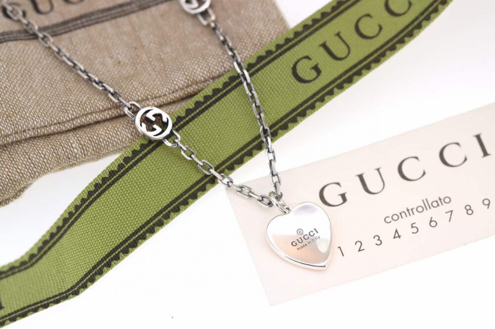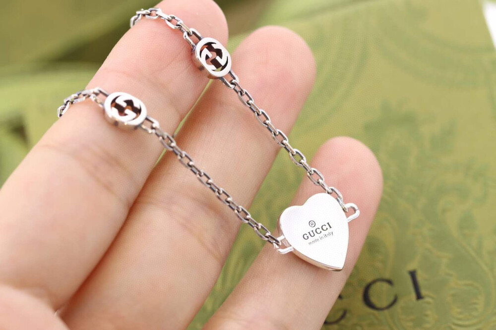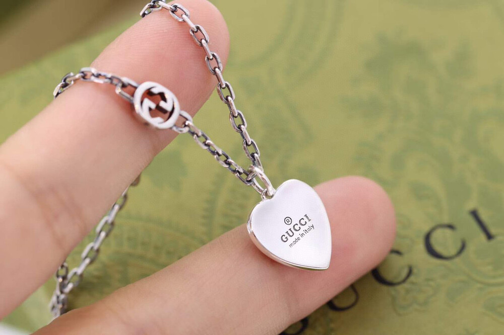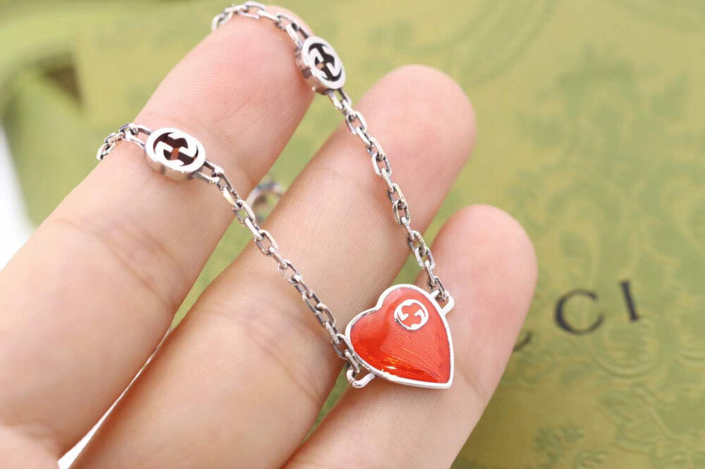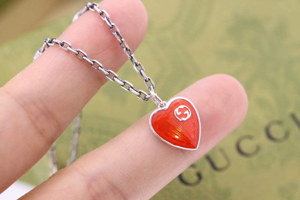 Gucci Interlocking Double G Red Enamel Heart Necklace/Gucci counter package