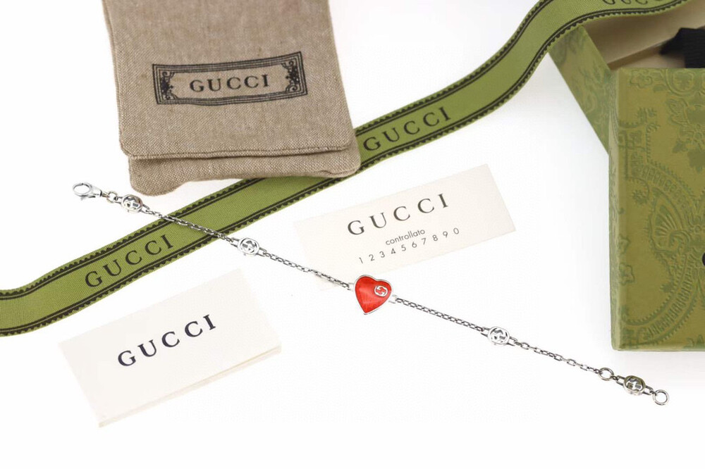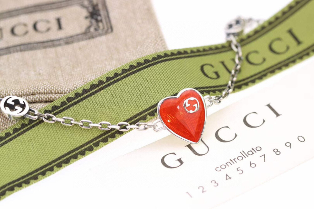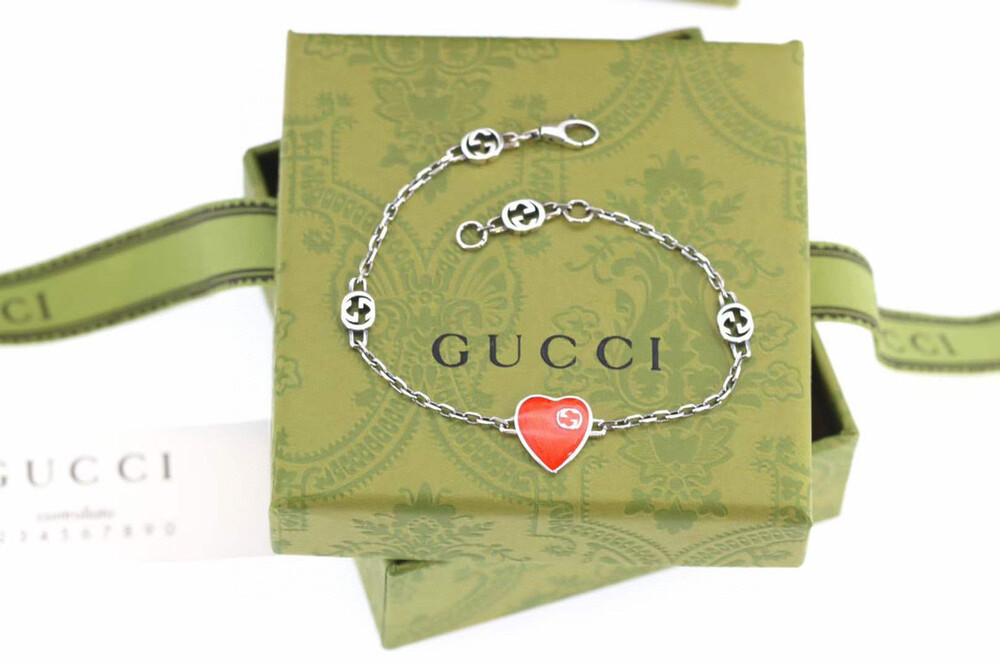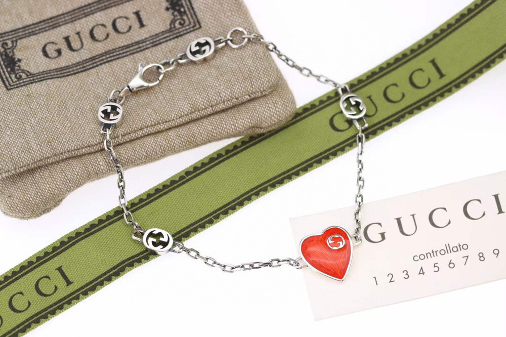 Gucci Gucci Interlocking Double G Red Enamel Heart BraceletLength: 17-19 cm