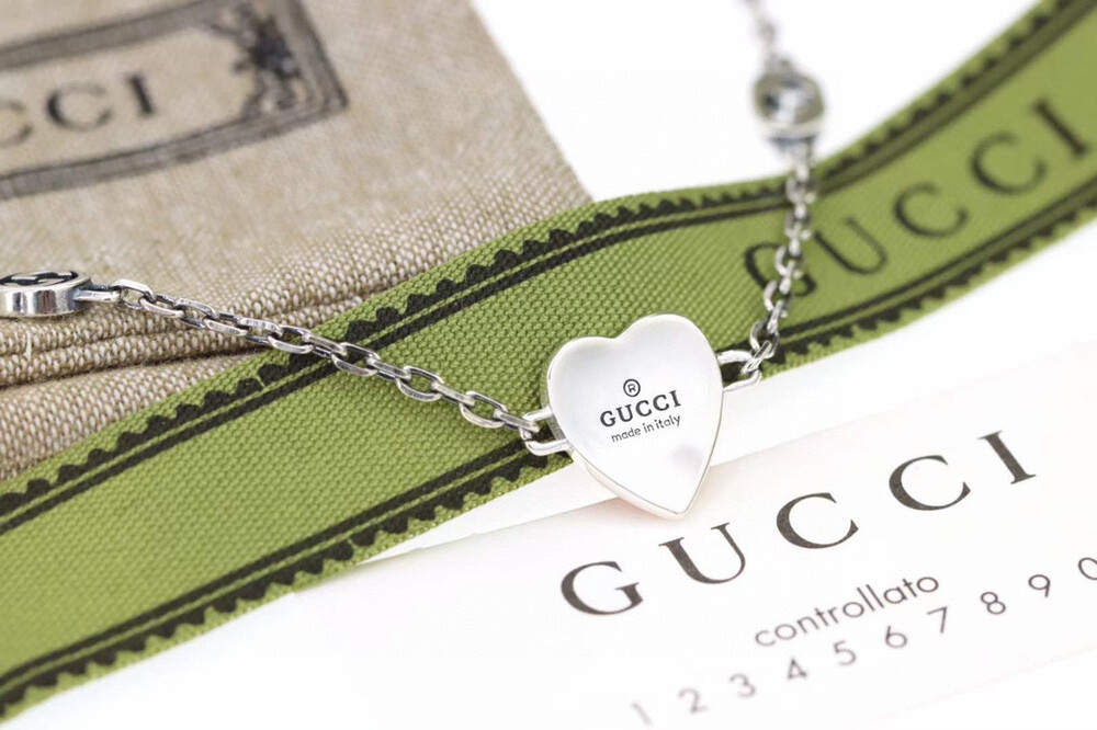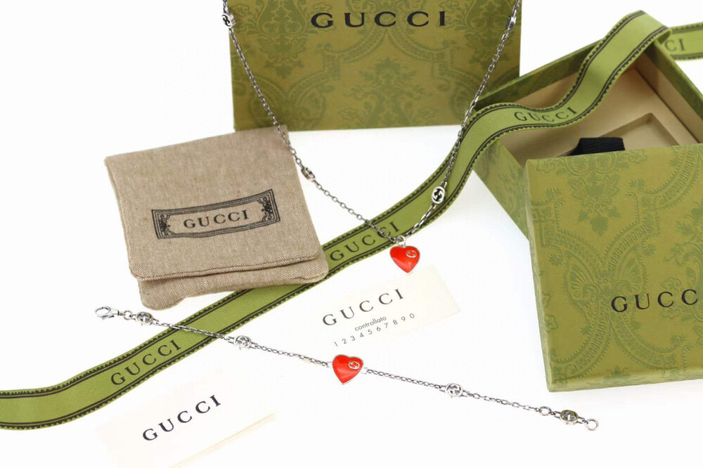 The Epilogue series is intended to pay tribute to the peak and final end of tradition. This necklace is cleverly integrated into the red enamel material on the engraved love pendant, which is matched throughout the various lines of the brand.The classic interlocking double G symbol pattern in the column excellently conveys the essence of Gucci's design.Sterling silver, red enamel, decorated with silver hollow effect interlocking double G pattern semi-shiny effect chain and interlocking double G patternLength: 50 cm