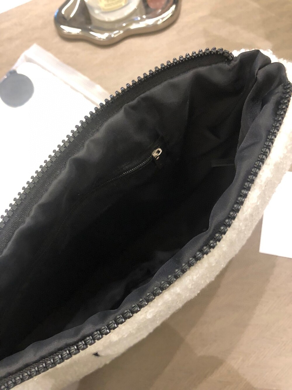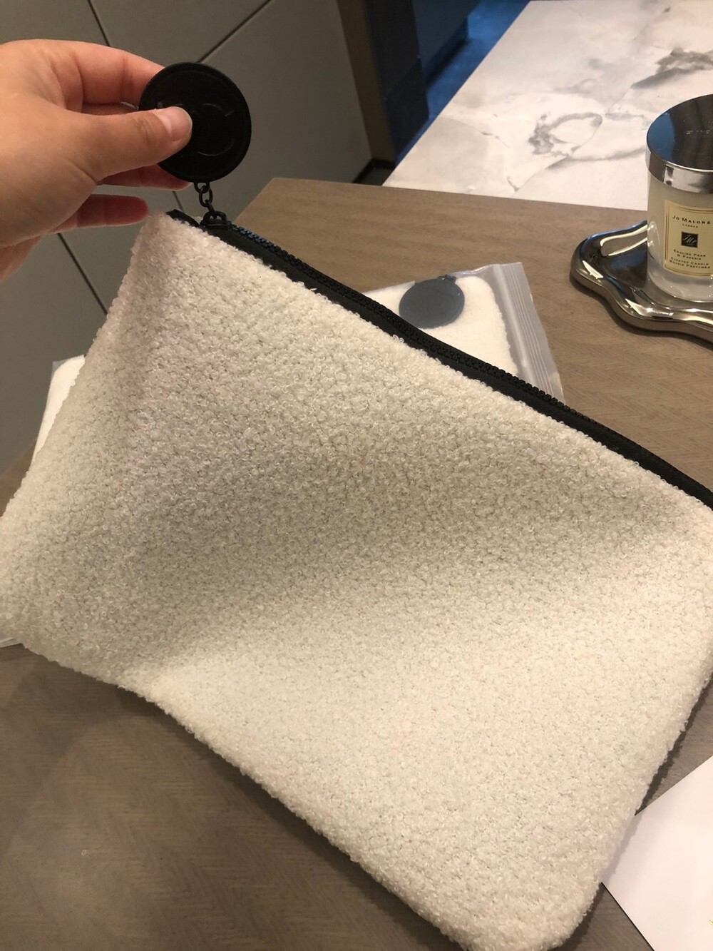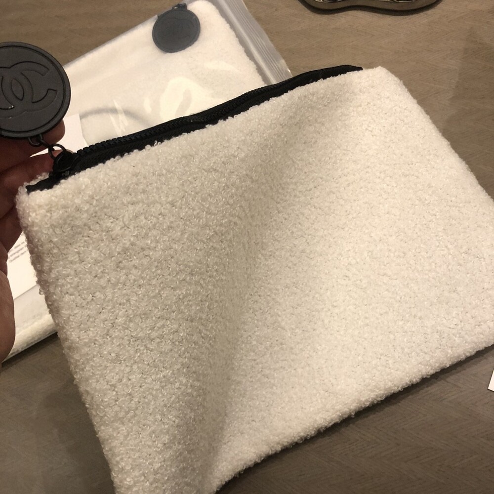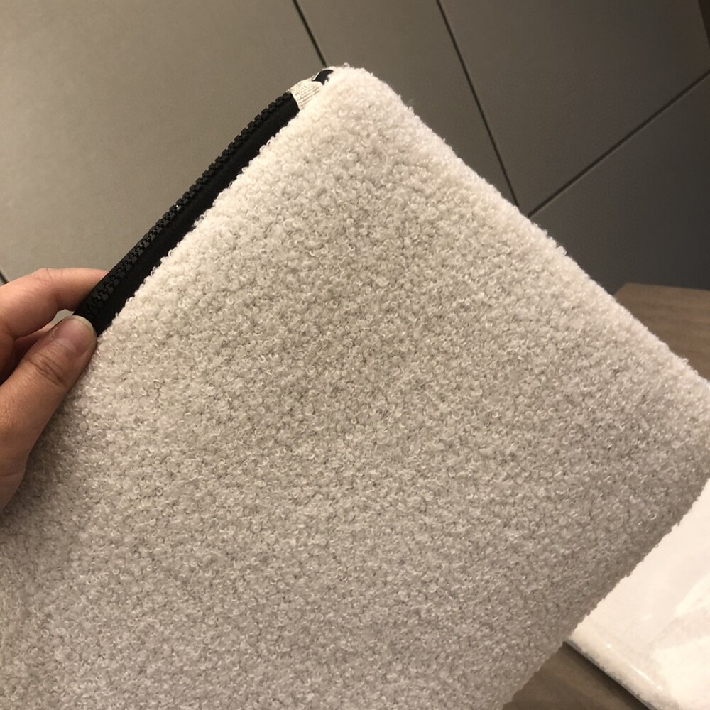Small Fragrance Plush Cosmetic Bag/ Multifunctional and practical, can be used at home/outdoor /Exclusive goods, original zipper, black label make-up beaute clearly visible, feel super soft