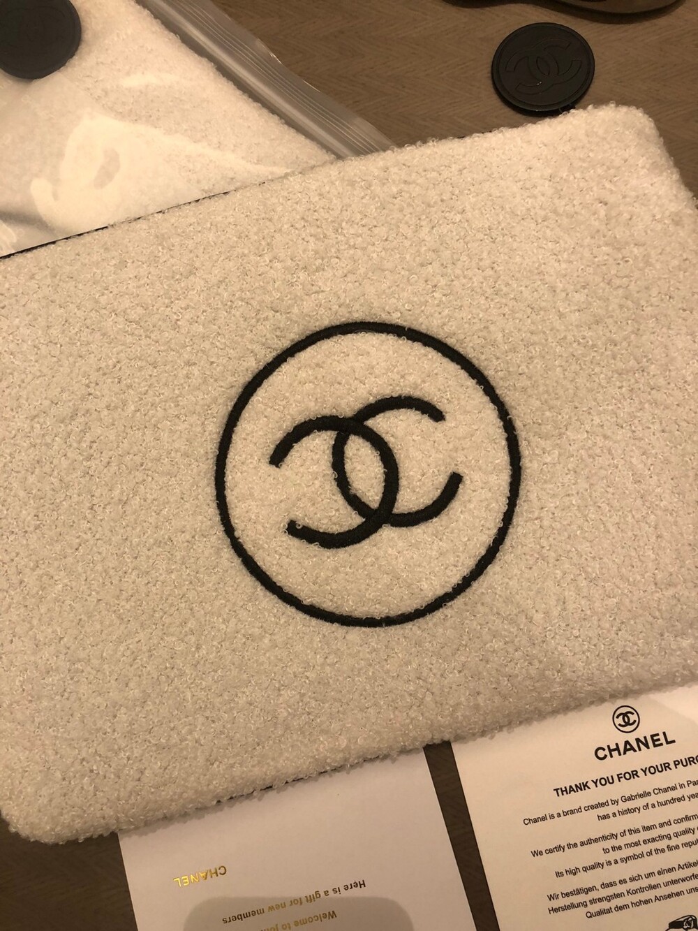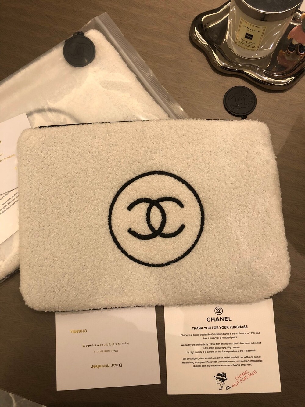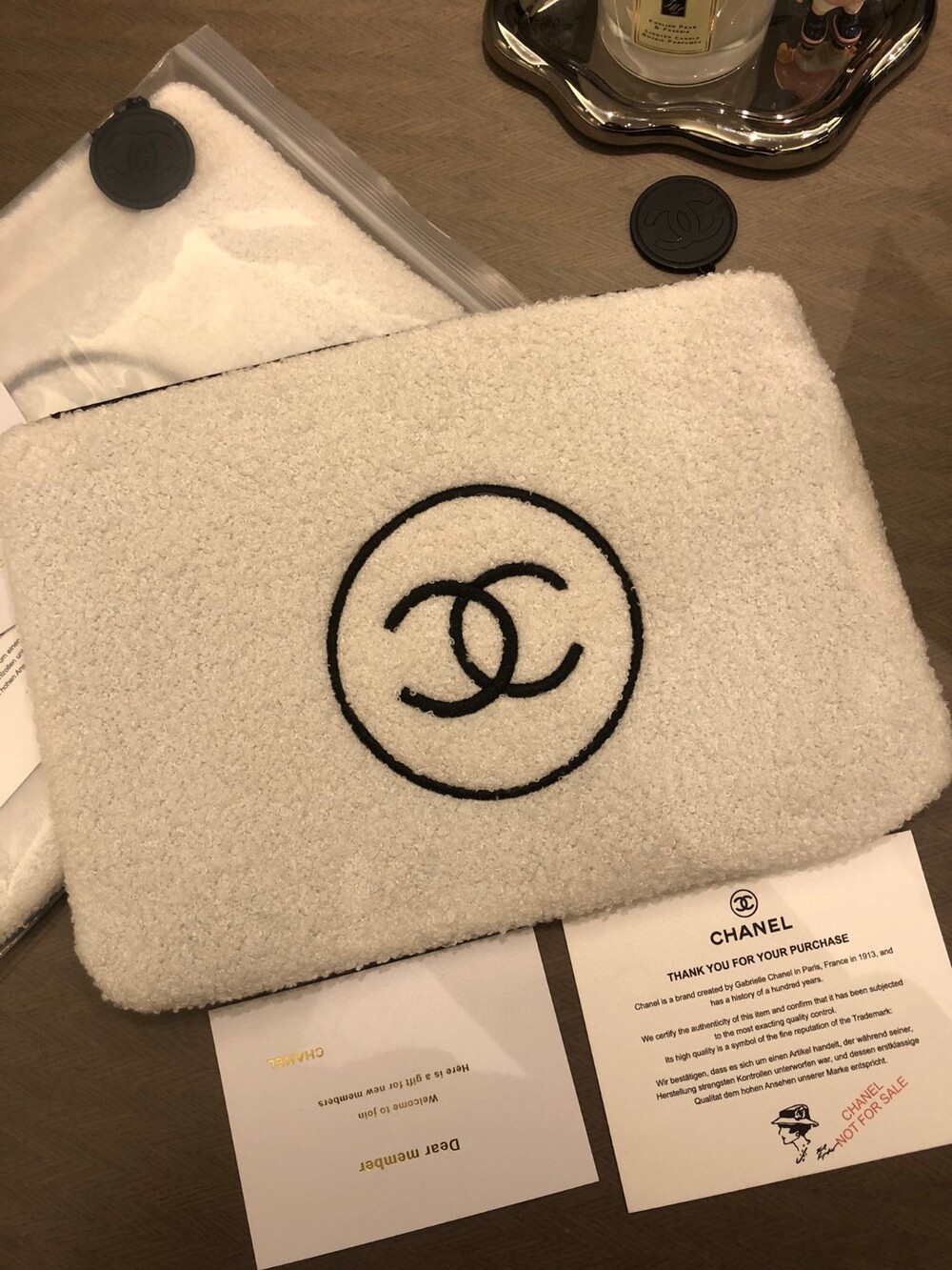 Small Fragrance Plush Cosmetic Bag/ Multifunctional and practical, can be used at home/outdoor /Exclusive goods, original zipper, black label make-up beaute clearly visible, feel super soft