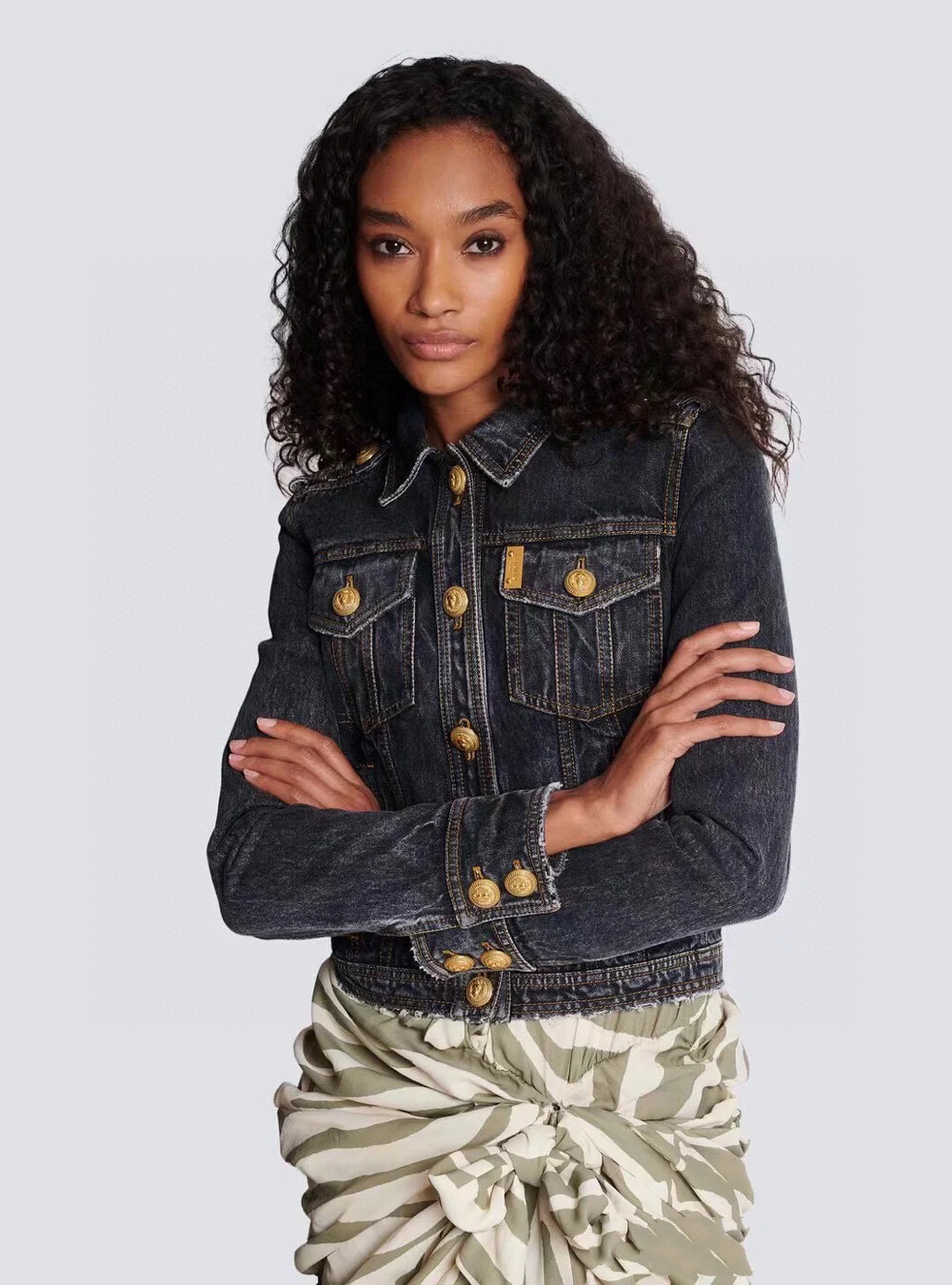 발맹 골드버튼이 특징인 데님 자켓