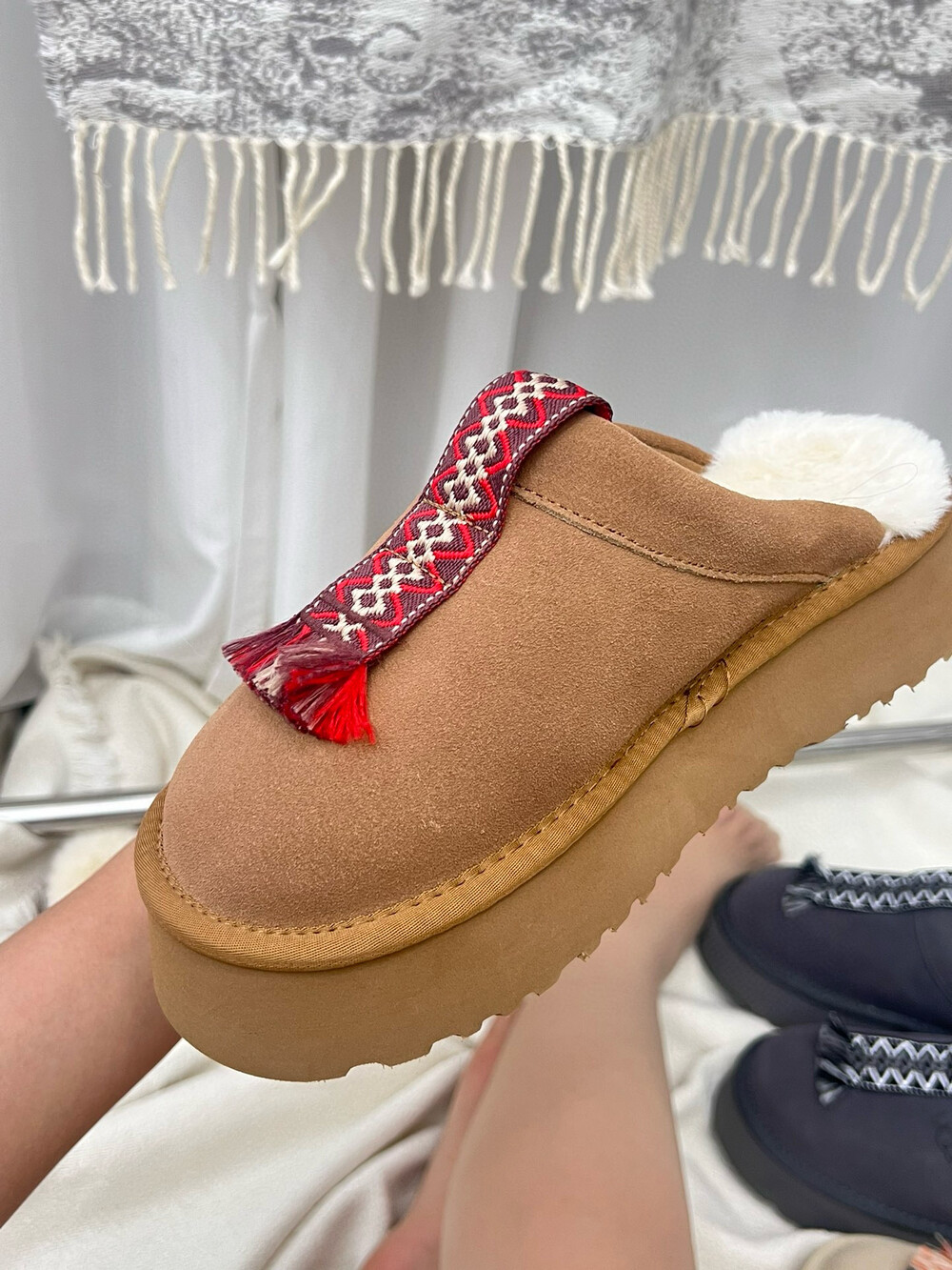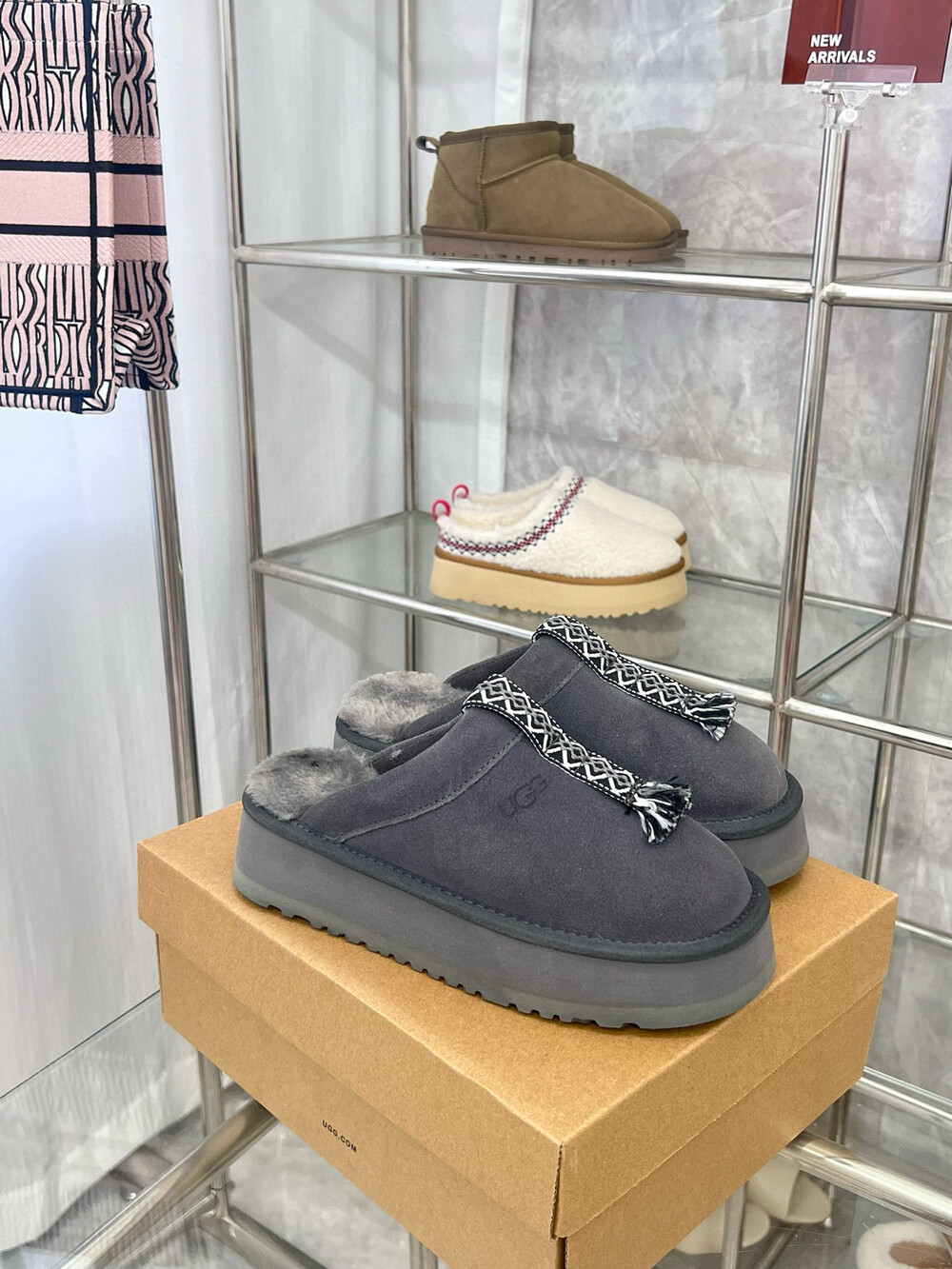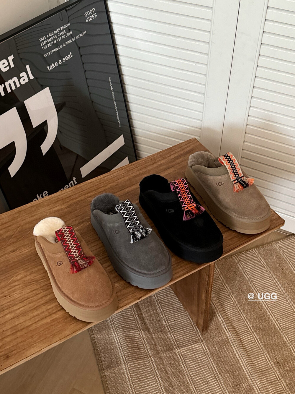 [수입] UGG 타즈 플리스 프린지 플랫폼 슬리퍼