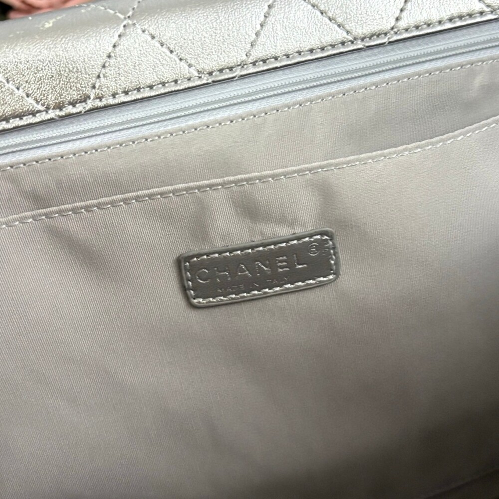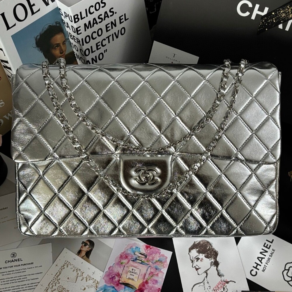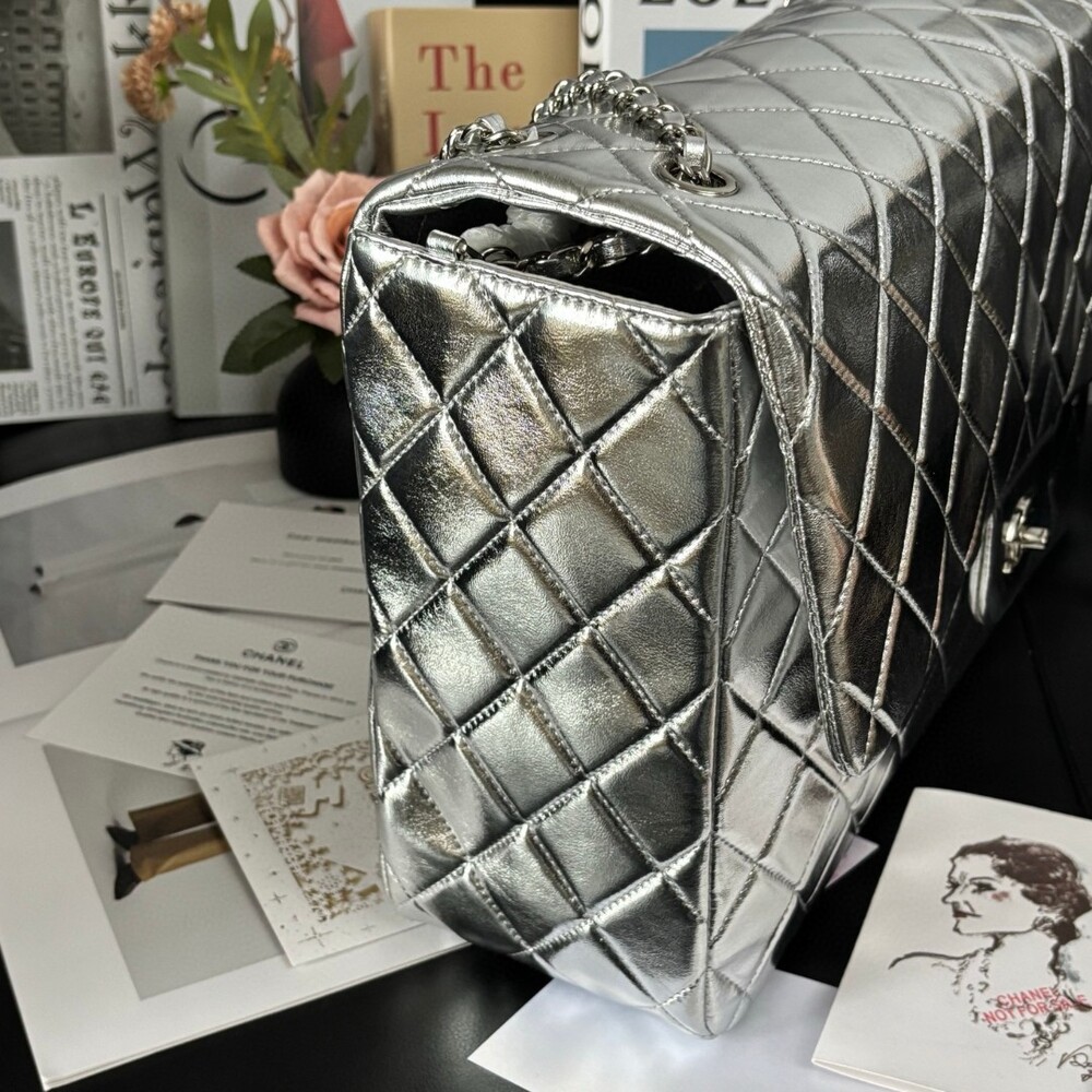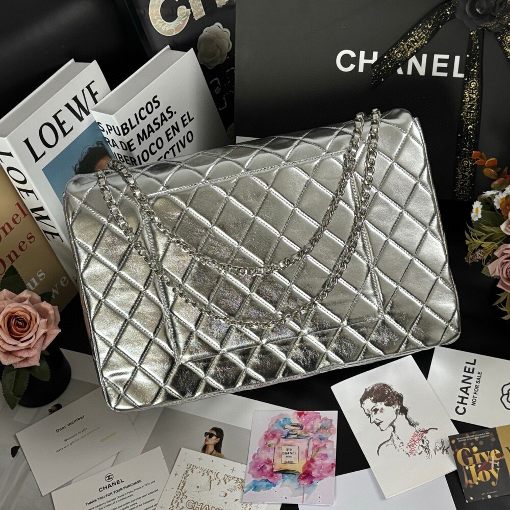 은은한 광택의 다이아몬드 퀼팅 + 실버 메탈 체인 디테일이