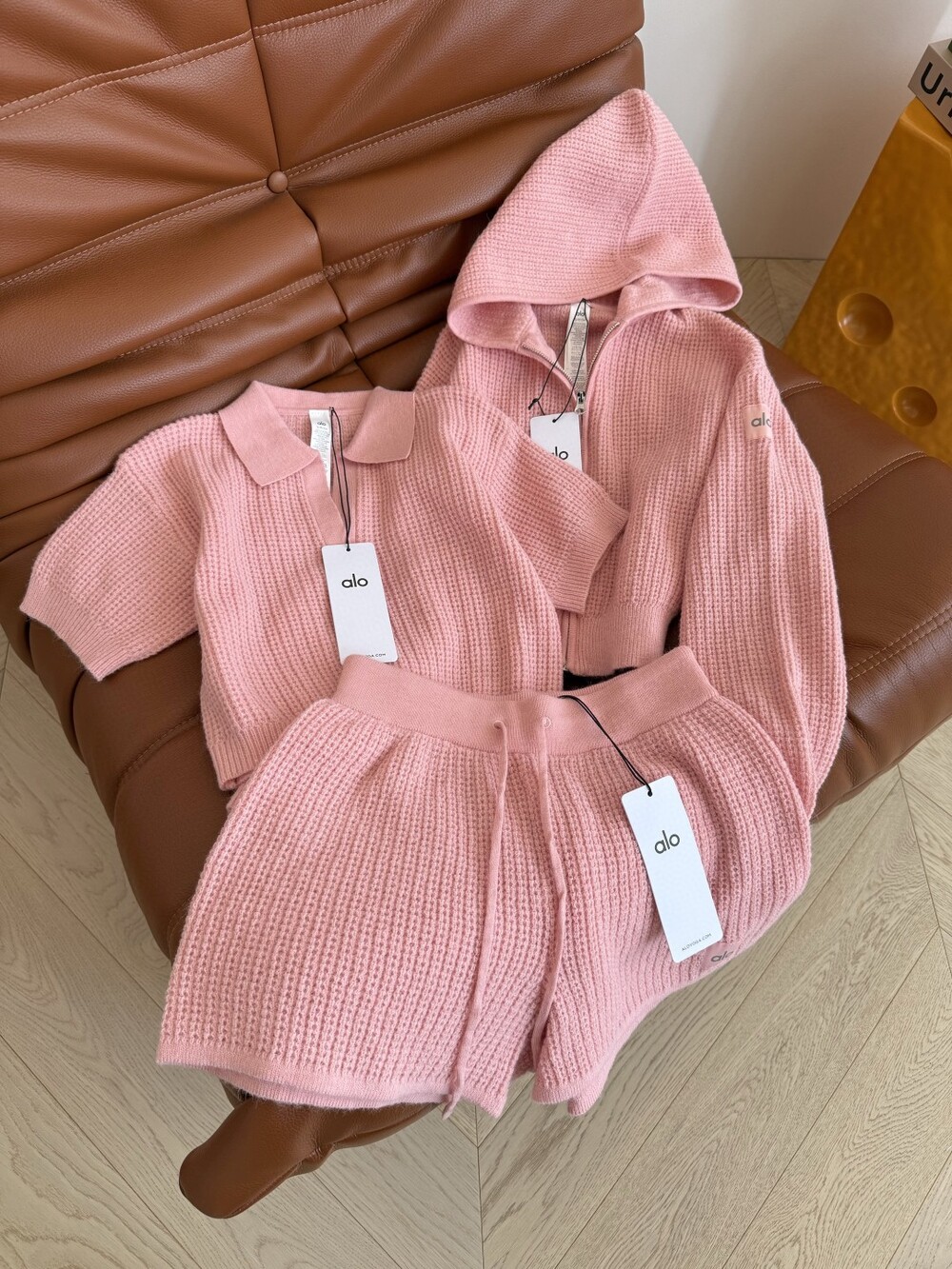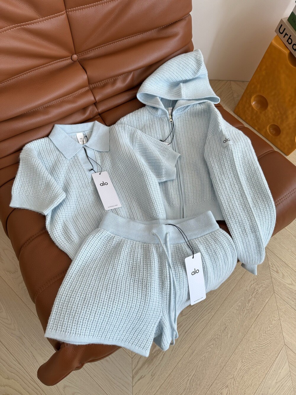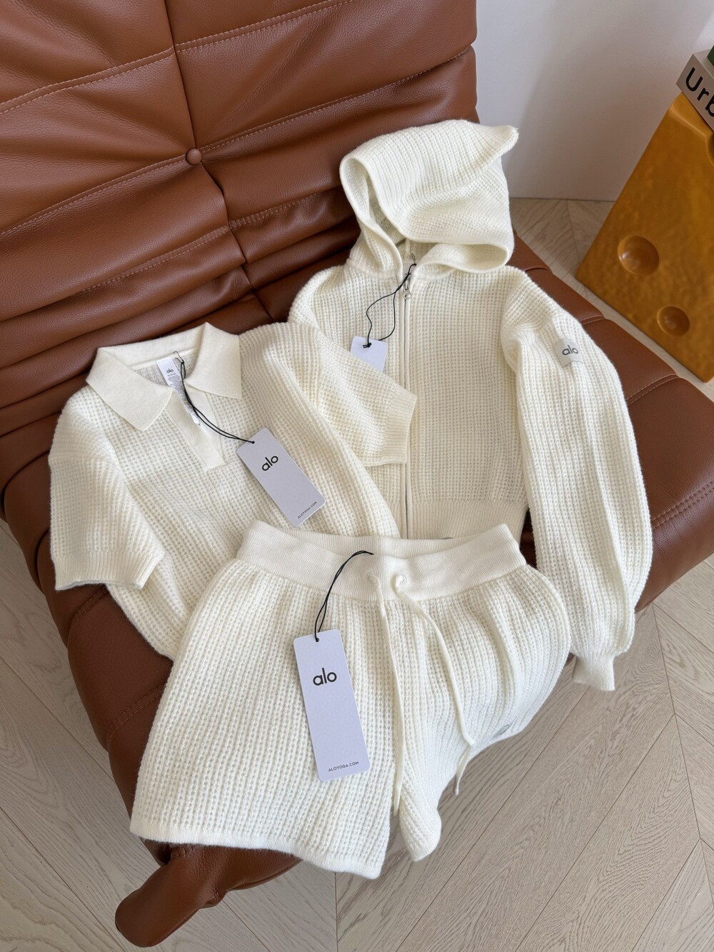 [수입] Alo Cozy Wool Knit 3-Piece Set (Top + Hoodie + Shorts)