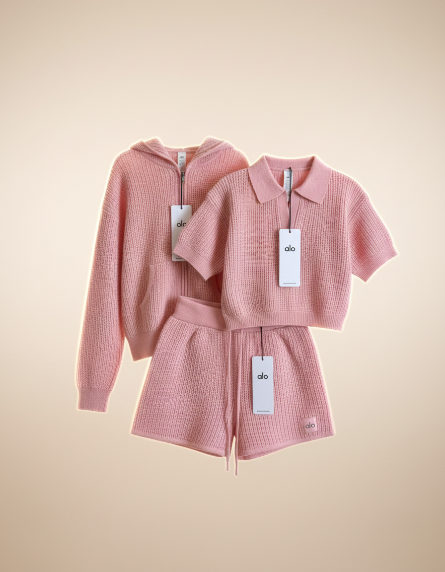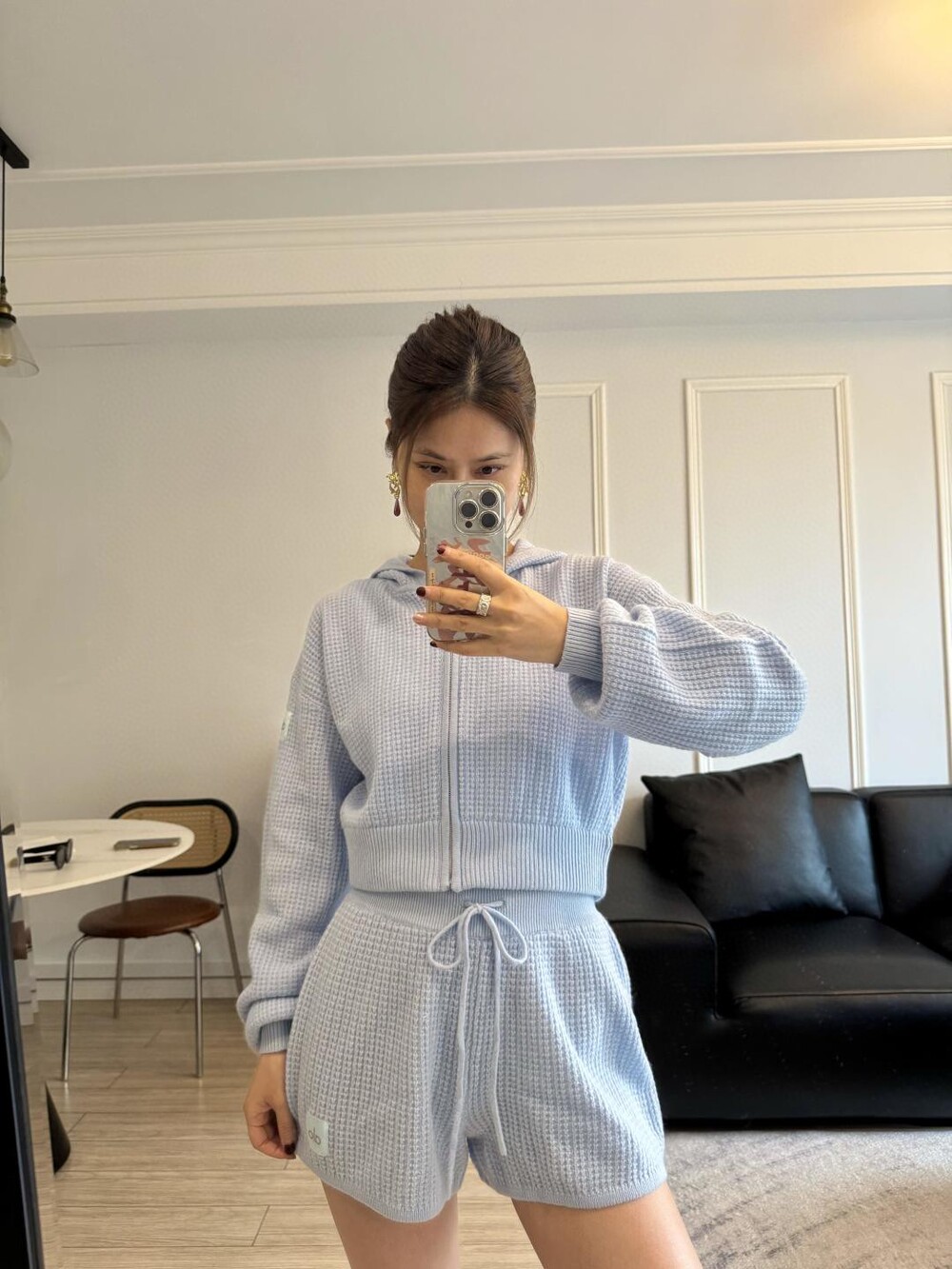 구성 : 반팔 니트 톱 + 지퍼 후드 집업 + 니트 쇼츠