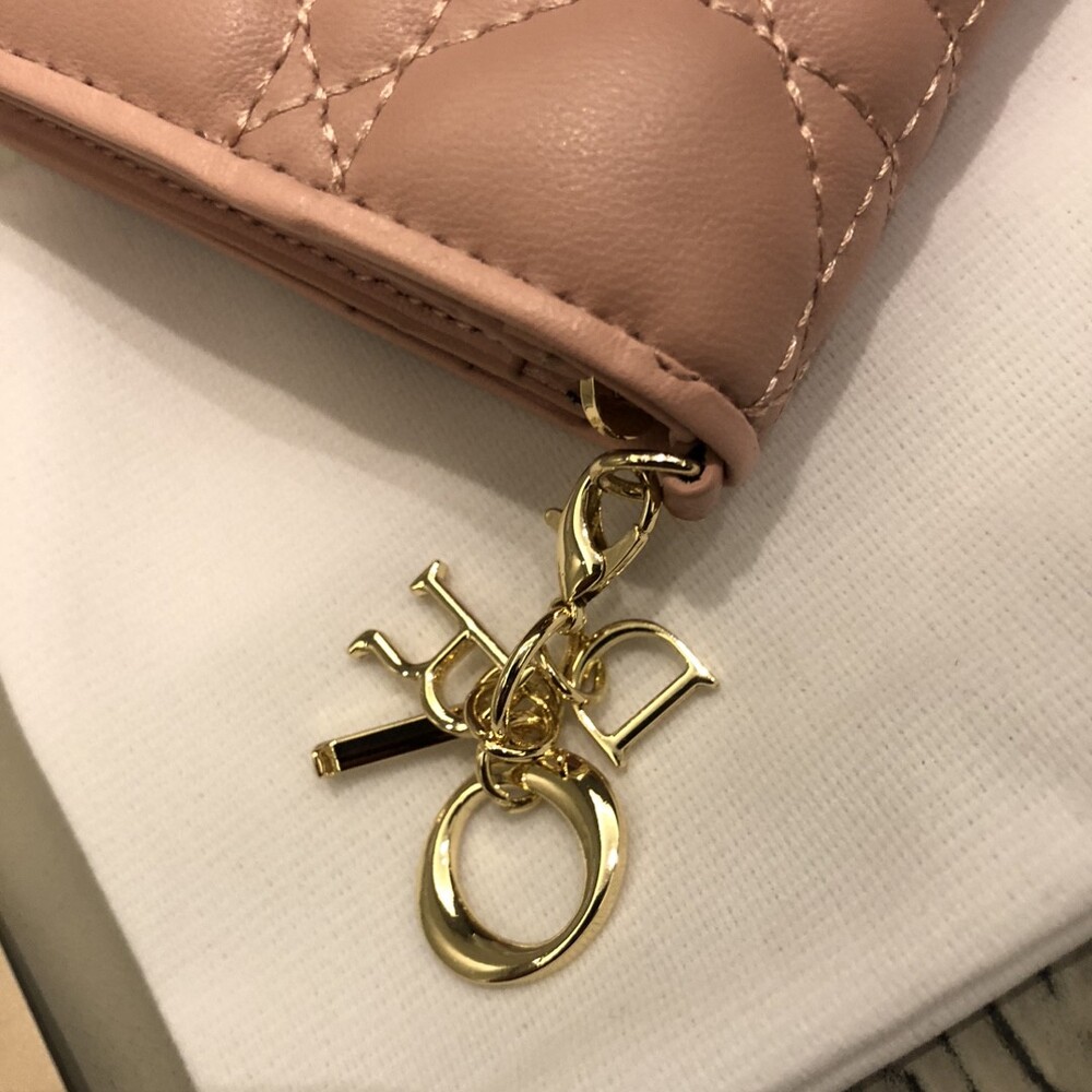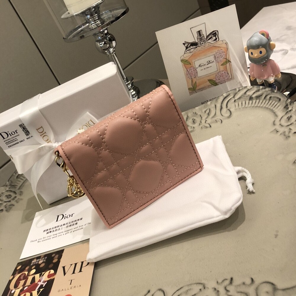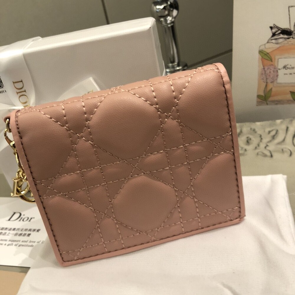 Rule 11*8.5*3model shipping at Dior gift counter This mini Lady Dior wallet is exquisitely designed and spacious. Black sheepskin with rattan-patterned finish line and "D.I.O.R. " Hanging decoration, to create a fashionable classic shape.It can store all kinds of daily necessities, and can be easily matched with other items of Lady Dior series to create a complete styling.