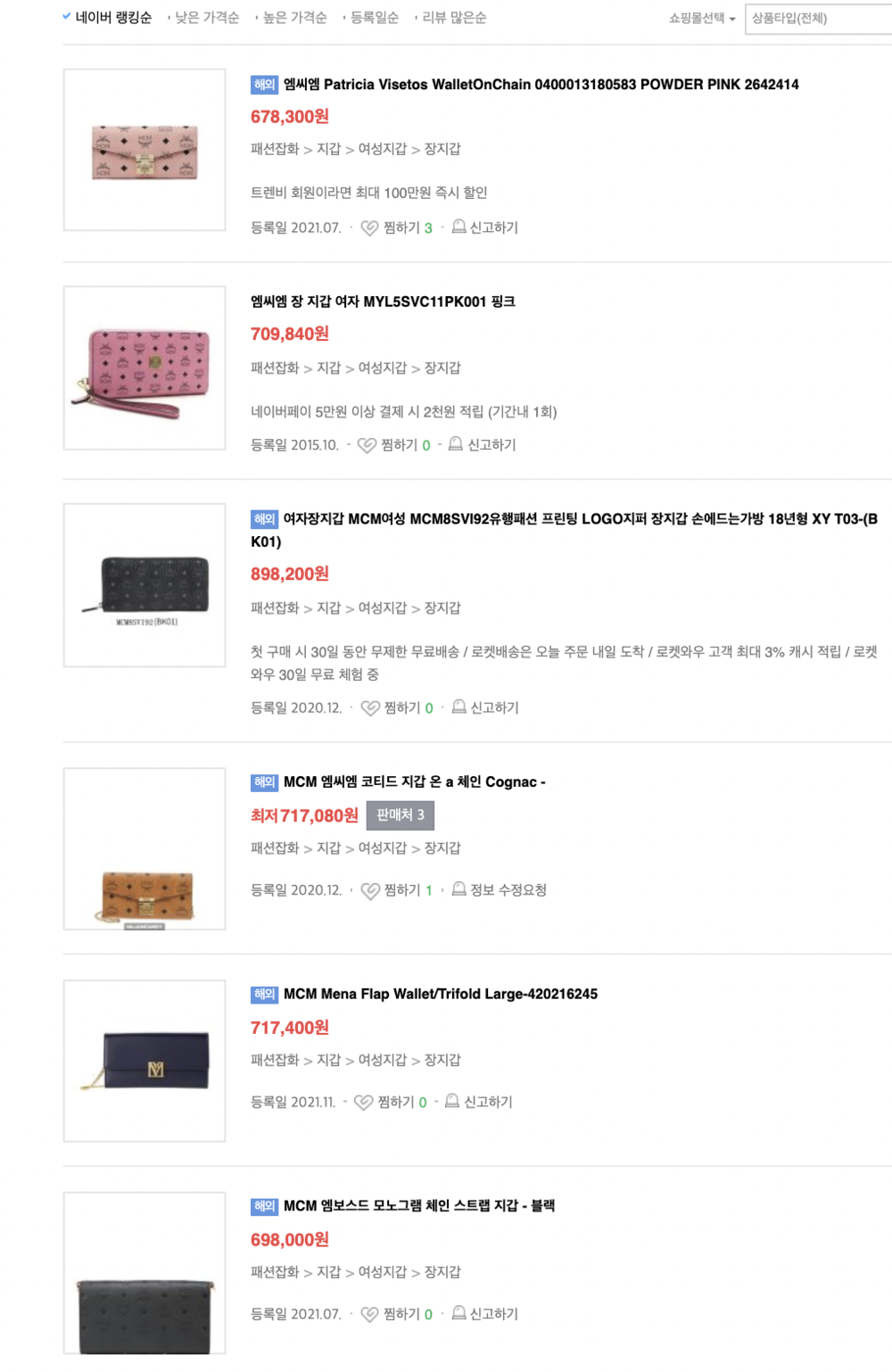 MCM도 장지갑들이 가격이 꽤 나가더라고요 :-)