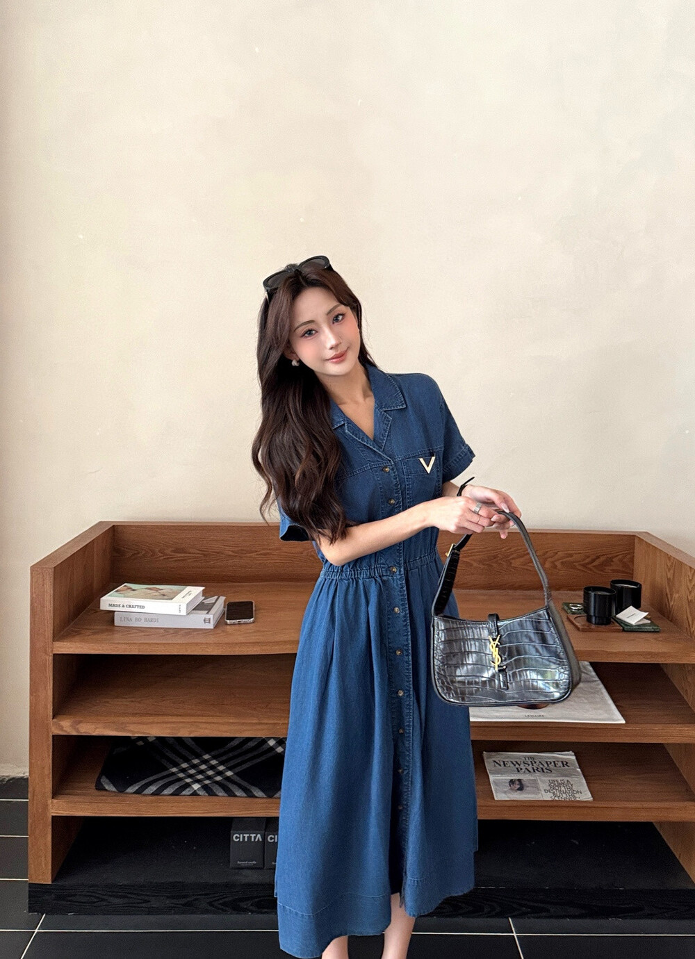 H. TINO V 데님 롱 원피스