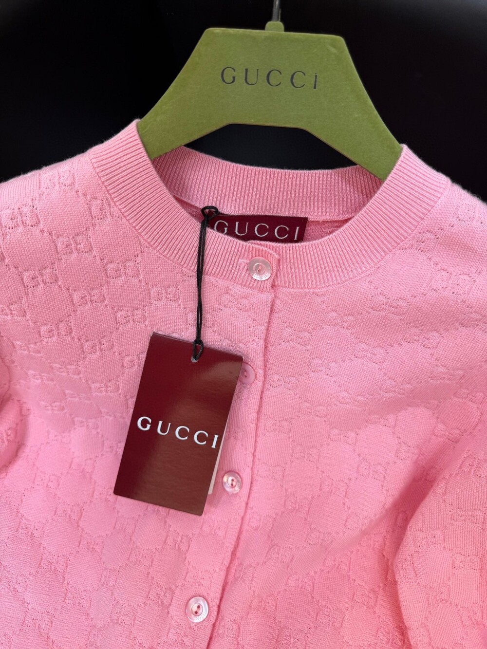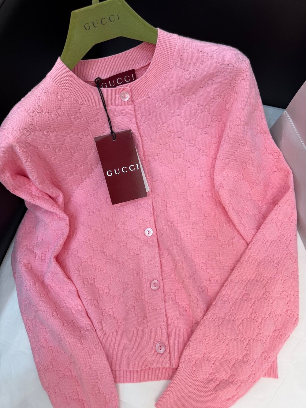 L. GG 인터로킹 핑크 소프트 가디건
