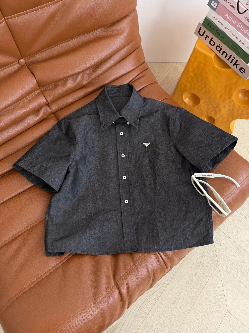 O. P 트라이앵글 크롭 반소매 셔츠