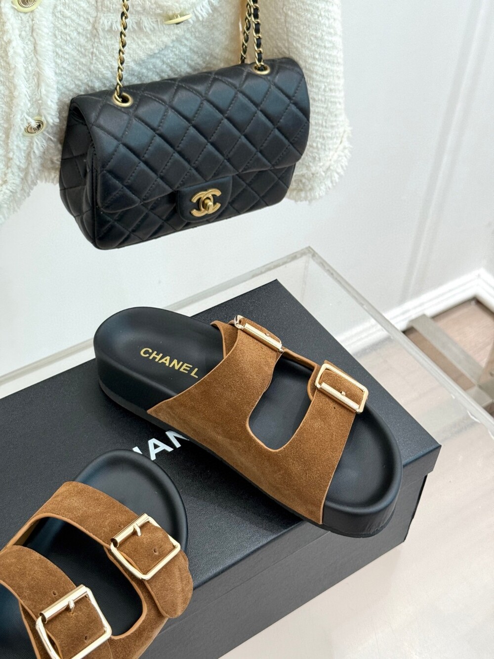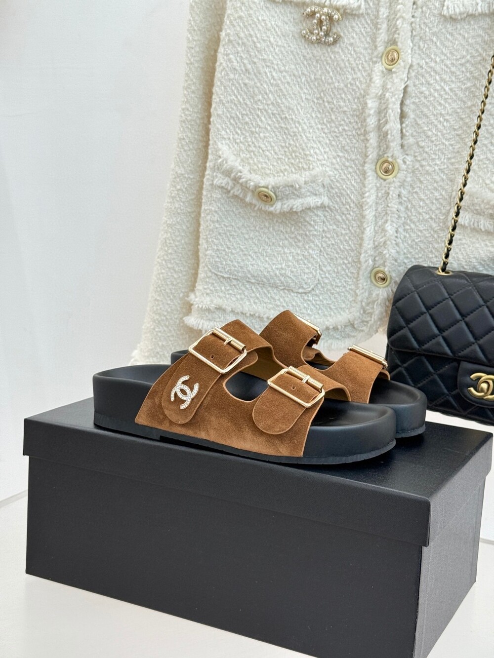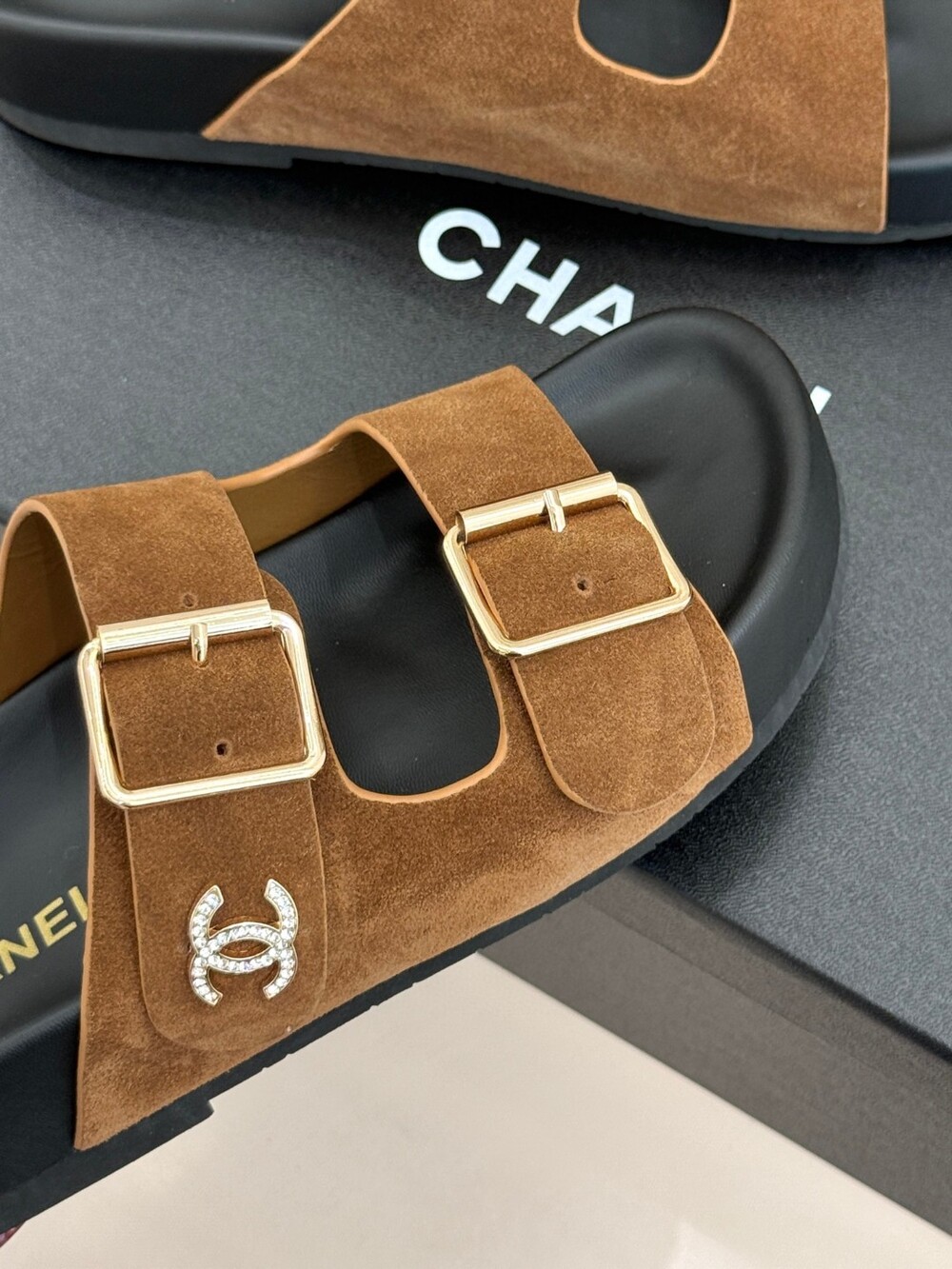 T. CC 스웨이드 버클 슬라이드