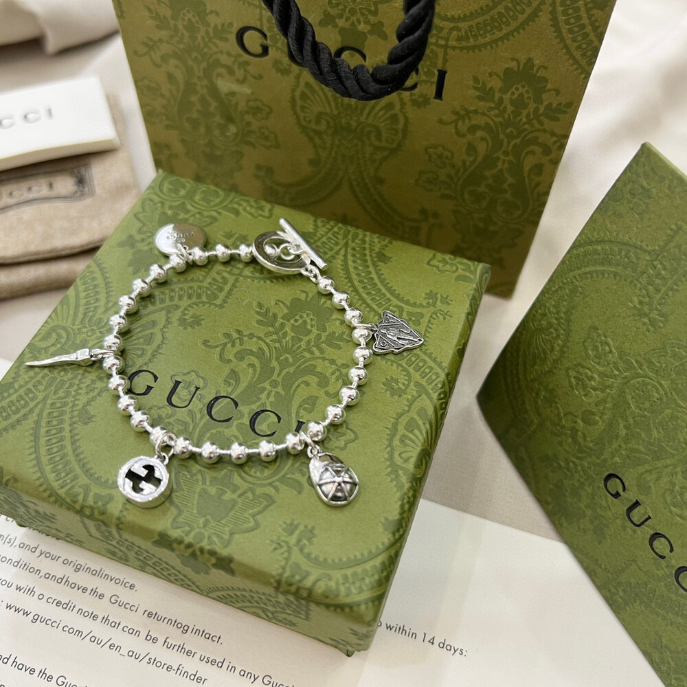Gucci vip offer 925 sterling silver double G-armor nail hat round card pendant bracelet