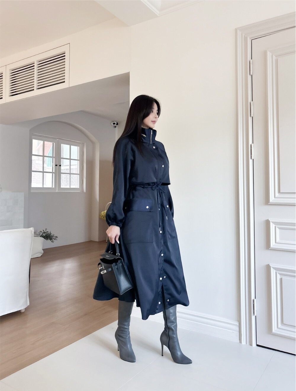 출근부터 주말 나들이까지 폭넓게 활용 가능한 트렌디한 코트 드레스입니다.
