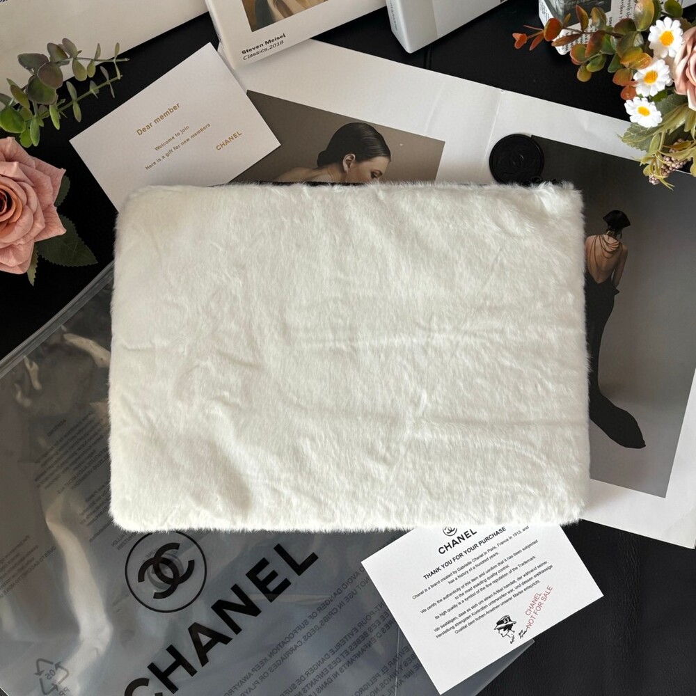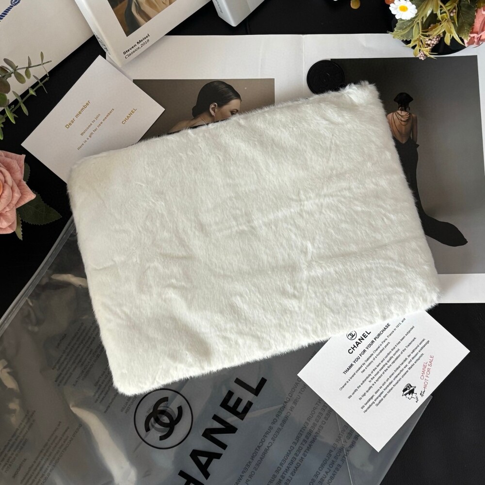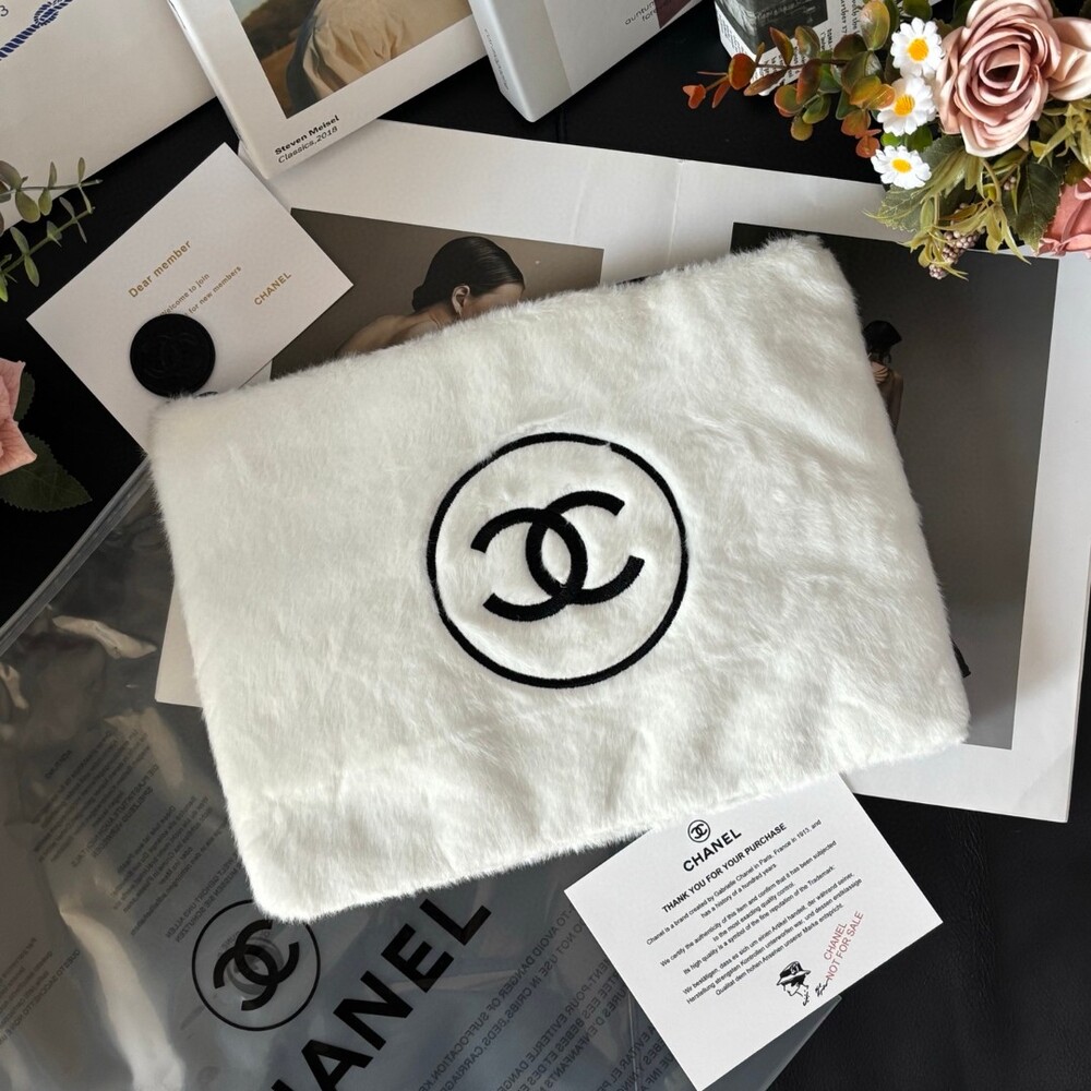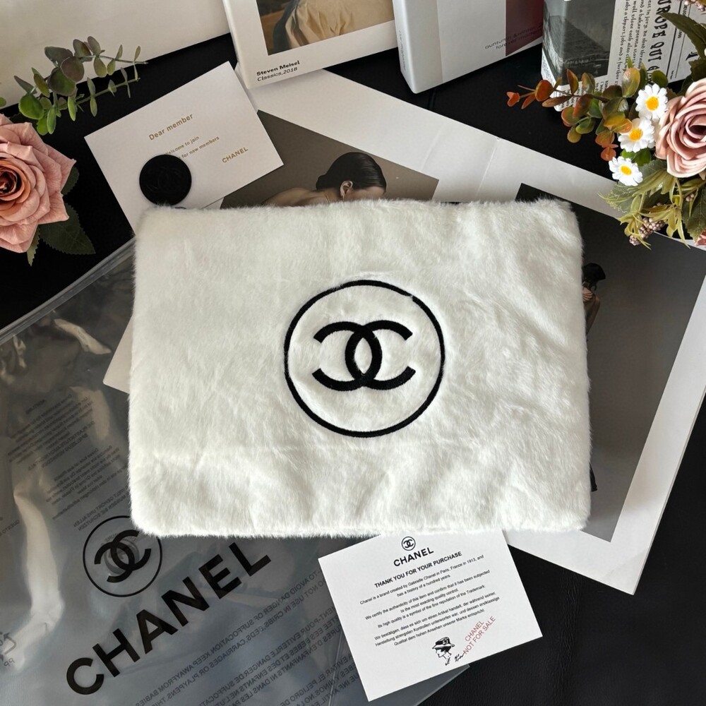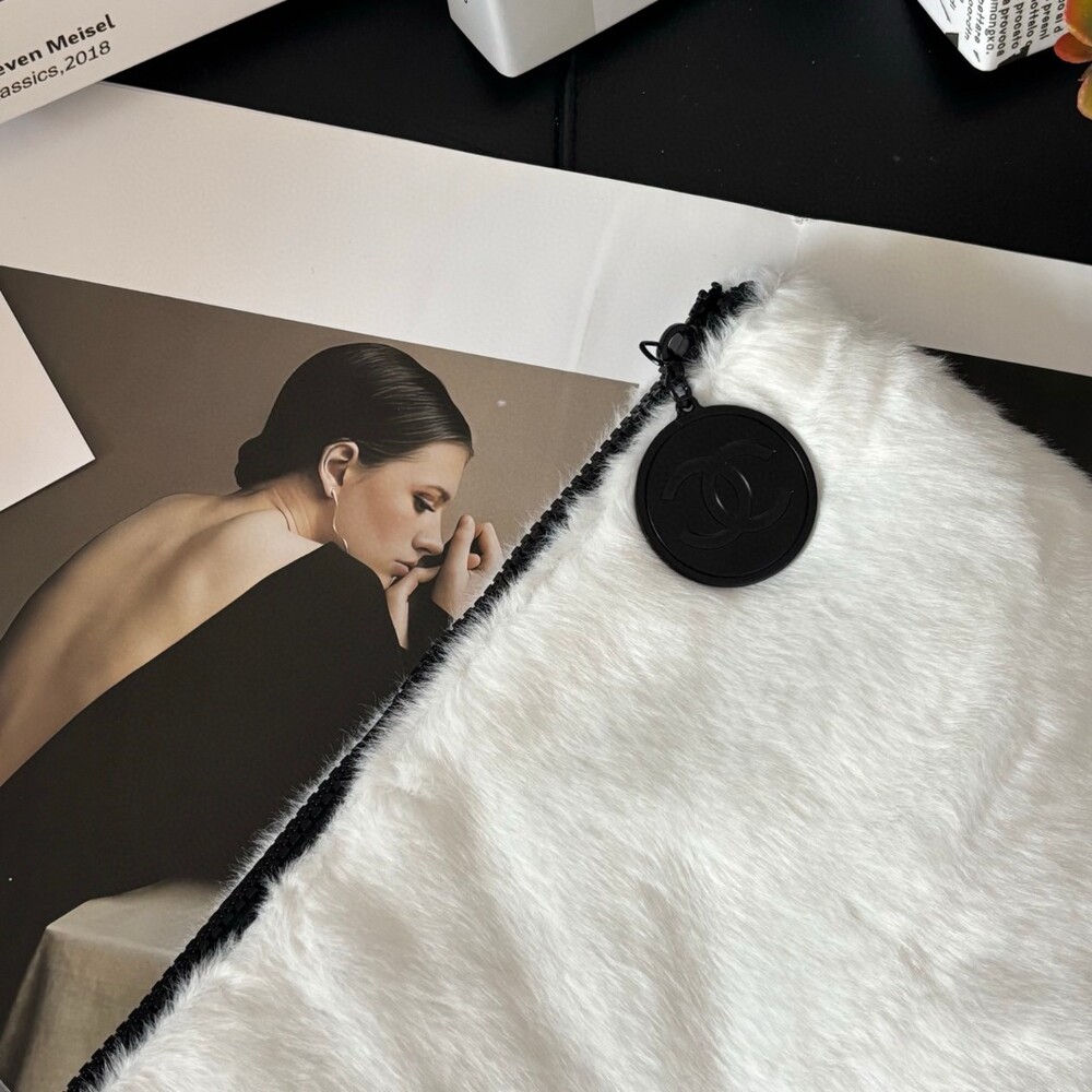 The CHANEL Faux Mink Fur Cosmetic Pouch is an