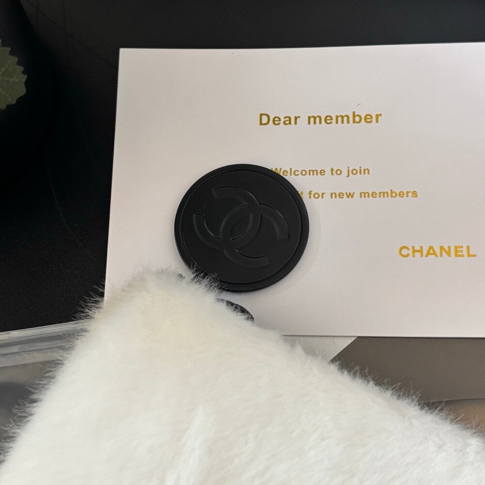 중앙의 샤넬 로고 자수로 브랜드 아이덴티티를 강조했습니다.