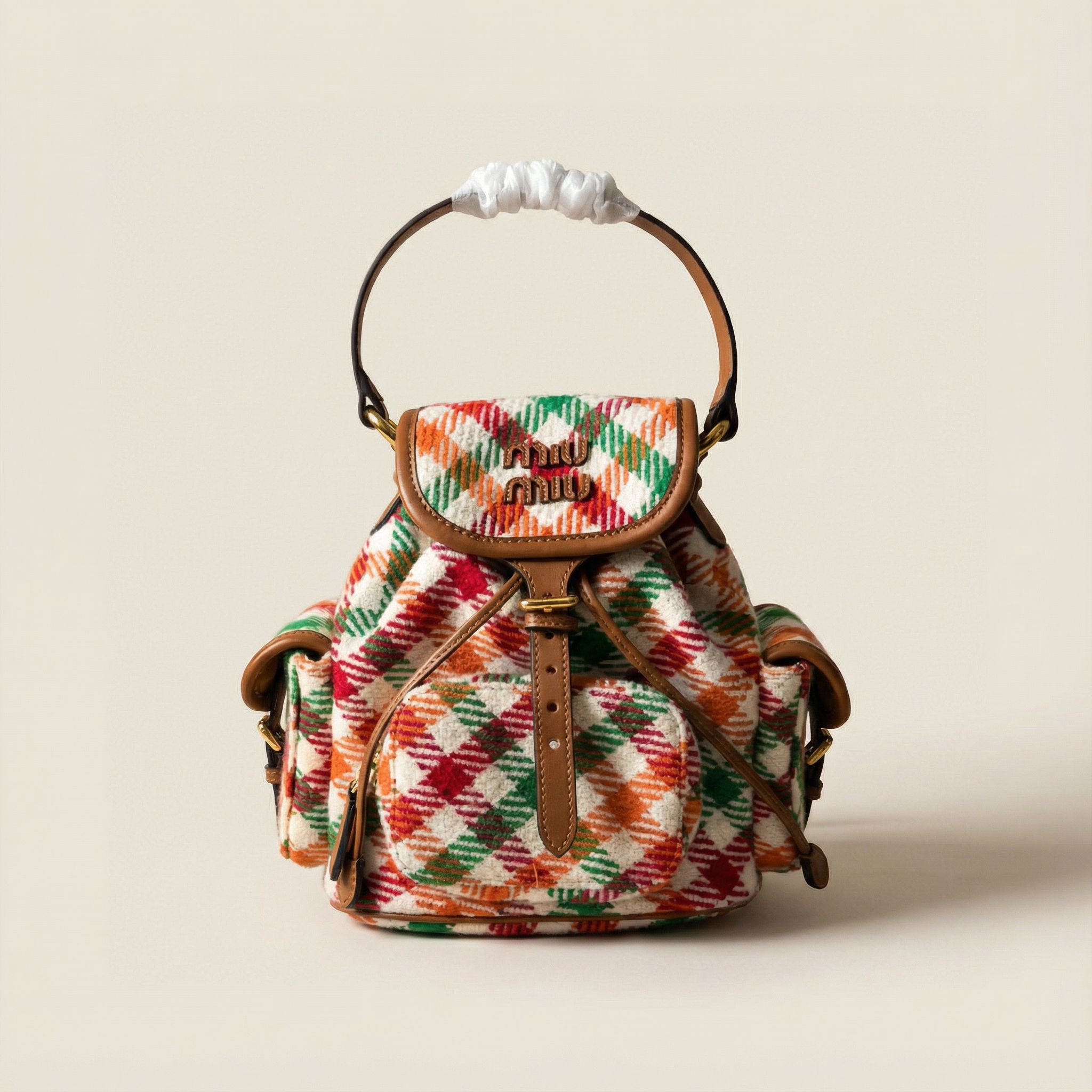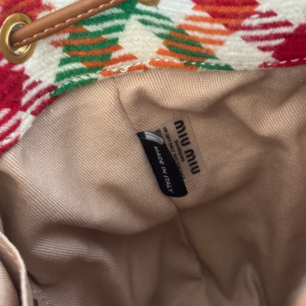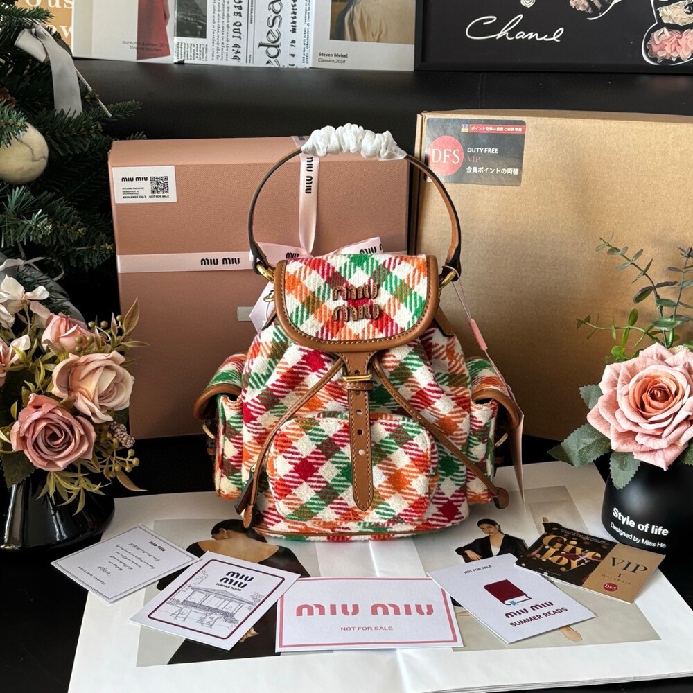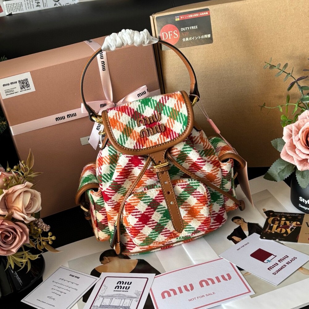 미우미우 특유의 감성을 담은 하운드투스 패턴 트위드 백팩입니다.