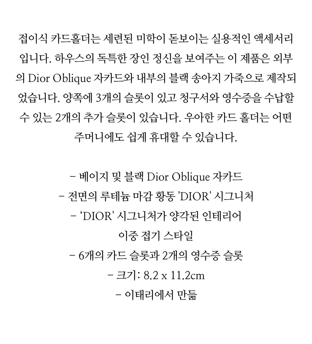 [정매장바잉] 디올 남성 바이폴드 카드홀더 오블리크 카드지갑 BI-FOLD CARD HOLDER H05E 2ESCH138YSE