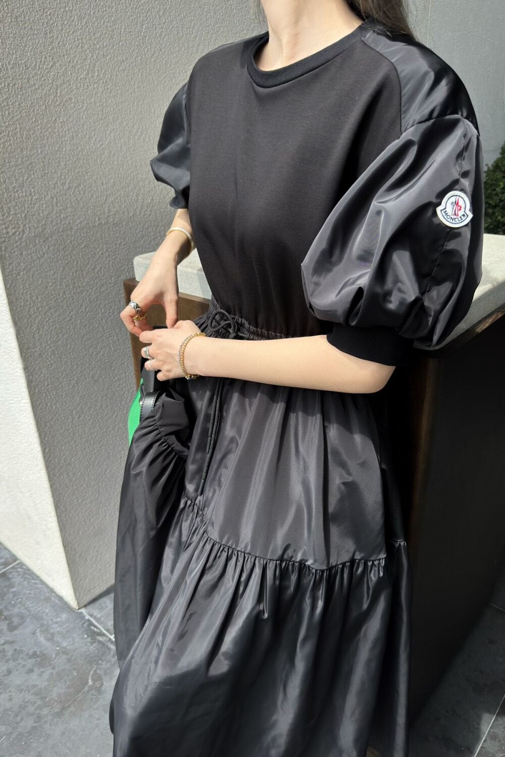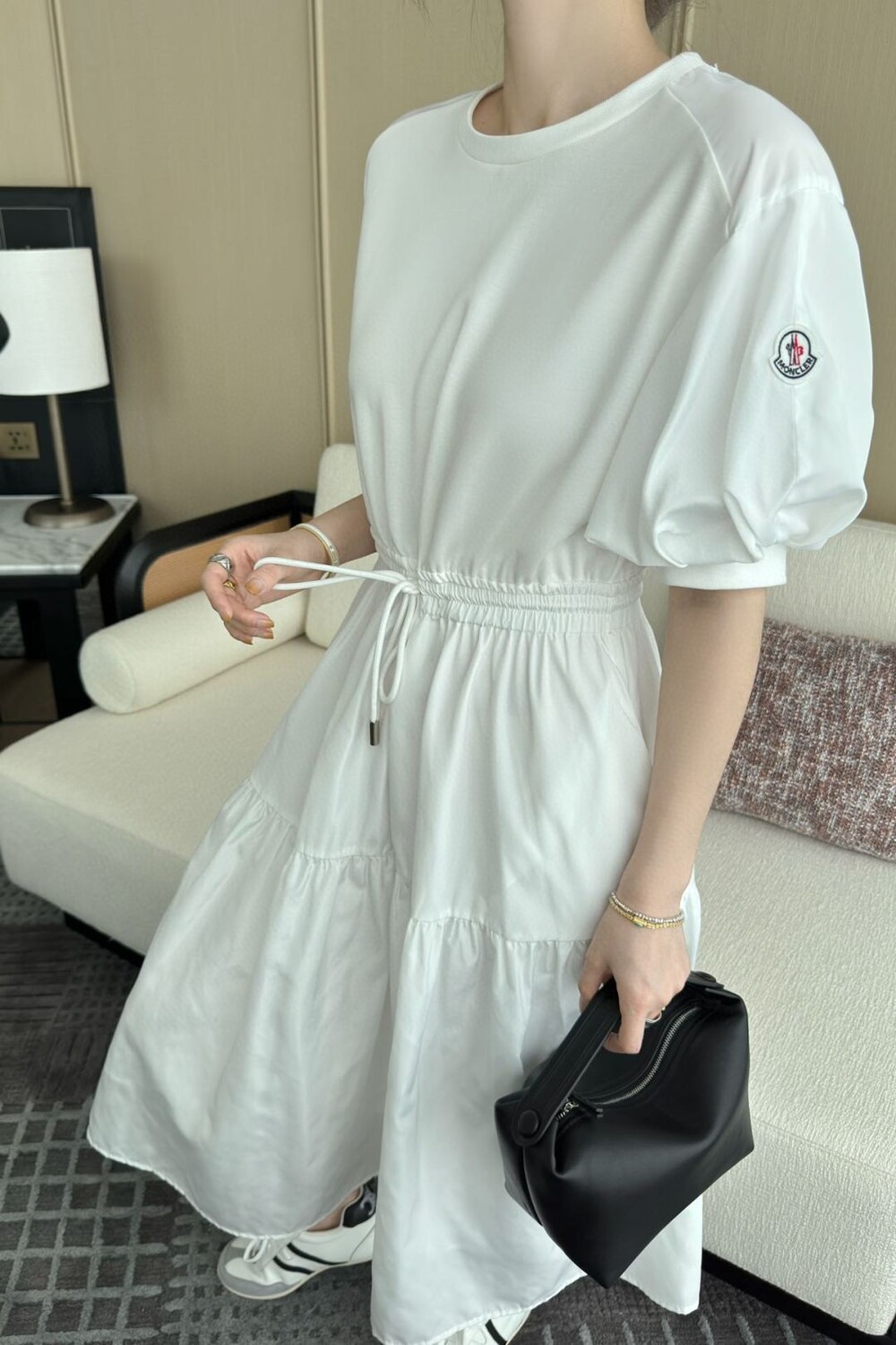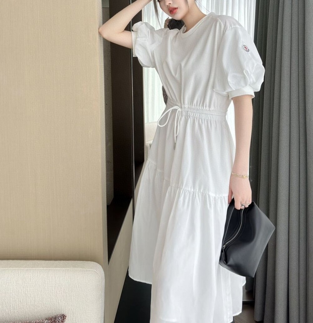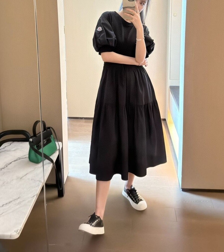 캐주얼하면서도 은근히 우아한 분위기가 느껴지는 몽클 원피스입니다 :)