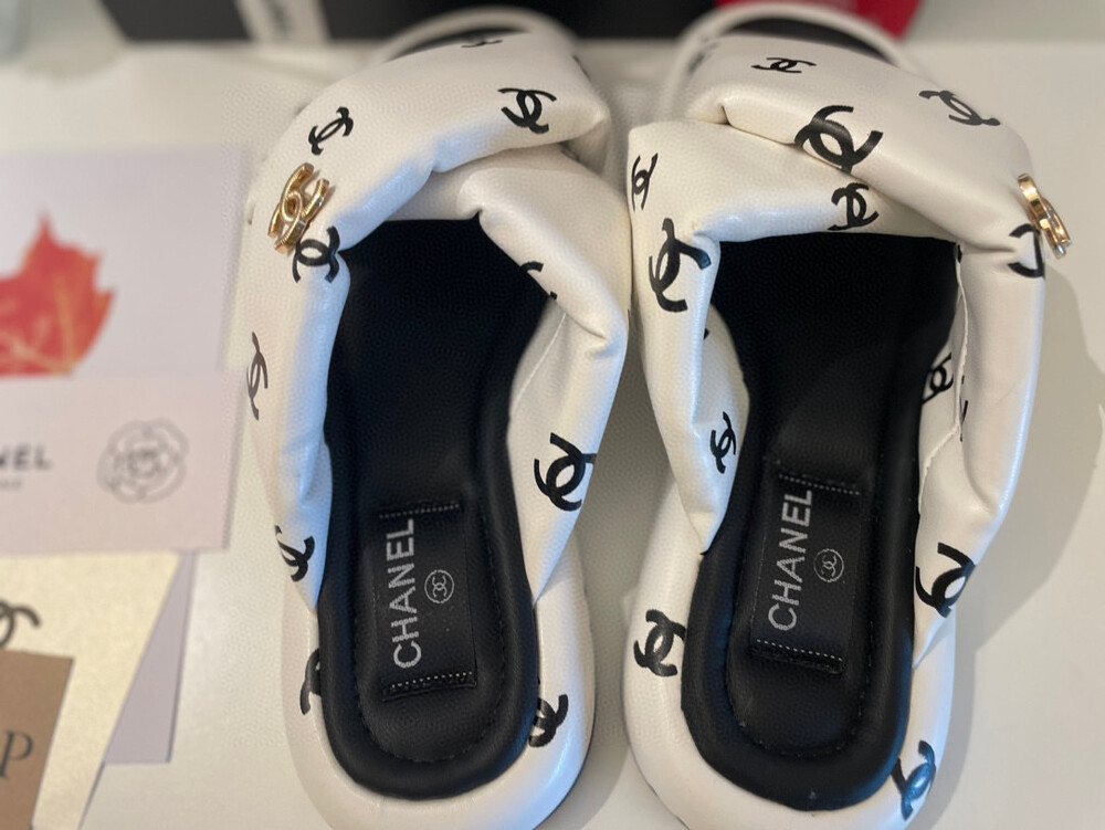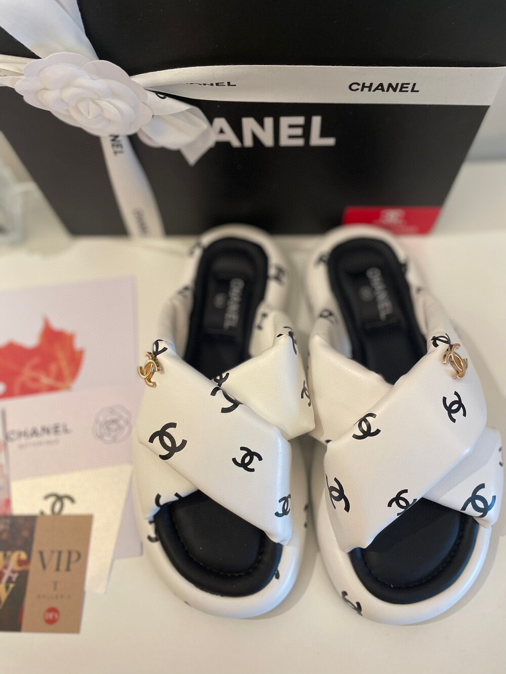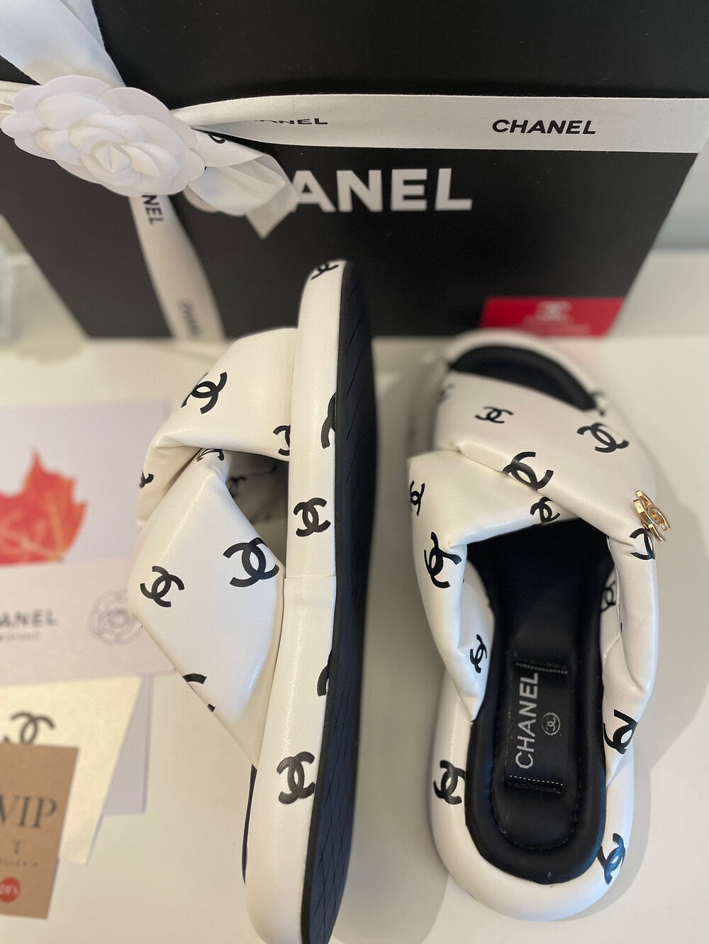 Chanel VIP Gift Slipper Special 35-40 yards Chanel Cross Platform Slippers. This cross-platform mule has a very comfortable fit as it gently wraps the top of the foot with cushion material. I recommend the standard size. The standard size is prettier because it is more elastic than leather. It's a model that I recommend daily because it doesn't come out with this kind of material